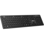 Bezdrátová klávesnice s tichým chodem disponuje 104 nízkoprofilovými klávesami a numerickým blokem, připojení zajišťuje bezdrátová technologie 2,4 GHz s USB 2,0 přijímačem a funkcí Plug & Play, zařízení je plně kompatibilní s operačními systémy Windows 10, 11 a Mac, napájení probíhá přes jednu 1,5 V AAA baterii, která není součástí balení, rozměry (š x v x h): 447 x 22 x 126 mm, hmotnost 0,35 kg.