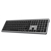 Bezdrátová klávesnice disponuje 111 nízkoprofilovými klávesami s nůžkovým mechanismem Scissors a 12 multimediálními rychlými volbami, duální režim připojení Dual Mode umožňuje volbu mezi Bluetooth a pásmem 2,4 GHz s dosahem signálu až 10 m, rozhraní USB 2,0 podporuje funkci Plug and Play pro snadnou instalaci, zařízení je plně kompatibilní s operačními systémy Windows 10, 11 a Android, kovová horní strana, napájení zajišťují dvě 1,5 V AAA baterie, které nejsou součástí balení, rozměry (š x v x h): 428 x 20 x 128 mm, hmotnost 0,55 kg.