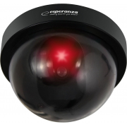 Maketa bezpečnostní kamery, realistický vzhled, blikající červená LED dioda, frekvence blikání každých 1,5 s, napájení pomocí 2 x AA baterií, baterie nejsou součástí balení, rozměry (š x v x h): 118 x 77 x 118 mm, černé barevné provedení.