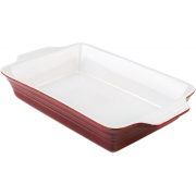 Keramická obdélníková zapékací forma, rovnoměrně absorbuje teplo a postupně ho uvolňuje, díky čemuž se pokrmy dobře propečou, odolává teplotám - 18 až 240°C, rozměry : 38,7 x 22,5, x 7 cm, objem 2,5 l. Drobné nerovnosti a praskliny jsou charakteristickou vlastností materiálu a nejsou důvodem k reklamaci, snadná údržba a čištění pod tekoucí vodou nebo v myčce nádobí. Barva červená/bílá.