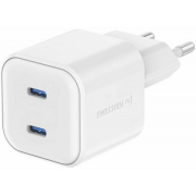 Síťová nabíječka Swissten s technologií GaN, rychlé nabíjení, max. výkon 20 Wattů, 2x USB-C, ochrana proti zkratování, přepětí, přetížení nabíjení a vysoké teplotě. Vstupy: 110V – 240V AC 0.5A, 50-60Hz. Výstupy: USB-C 5V DC 3A, 9V DC 2.22A, 12V DC 1.67A / Max. výkon: 20W, společný výstup USB-C a USB-C: 15W.