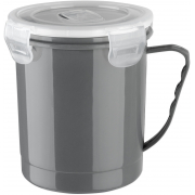 Plastový hermetický hrnek s uchem 0,65 L Fast Click o průměru 105 mm a výšce 110 mm, silikonové těsnění zajišťuje vzduchotěsnost dózy, díky té zůstávají potraviny dlouho čerstvé, použití v mrazničce do -18 st.C a v mikrovlnné troubě do + 120 st.C.