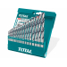 Sada 3 stupňovitých vrtáků, používají se pro vrtání a odhrotování kruhových otvorů do tloušťky stěny 4 mm u kovových materiálů. Lze je použít také pro vrtání do dřeva a plastů. Kuželový vrták je určen pro plynulé a bezhrotové vrtání a navrtávání otvorů bez deformace plechu. Vrtáky je možné znovu naostřit, titanový povrch zvyšuje odolnost vrtáků, stopka vrtáku s fazetami pro lepší upnutí ve sklíčidle, sada 3 ks vrtáků 4-12/1 mm, 4-20/2 mm, 4-32/2 mm, baleno v plechovém pouzdře.