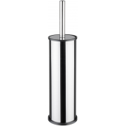 Souprava na WC. Materiál: nerez, plast. Rozměry: délka štětky 34 cm, průměr štětky 8 cm, průměr nádoby 10 cm, výška nádoby 27 cm.