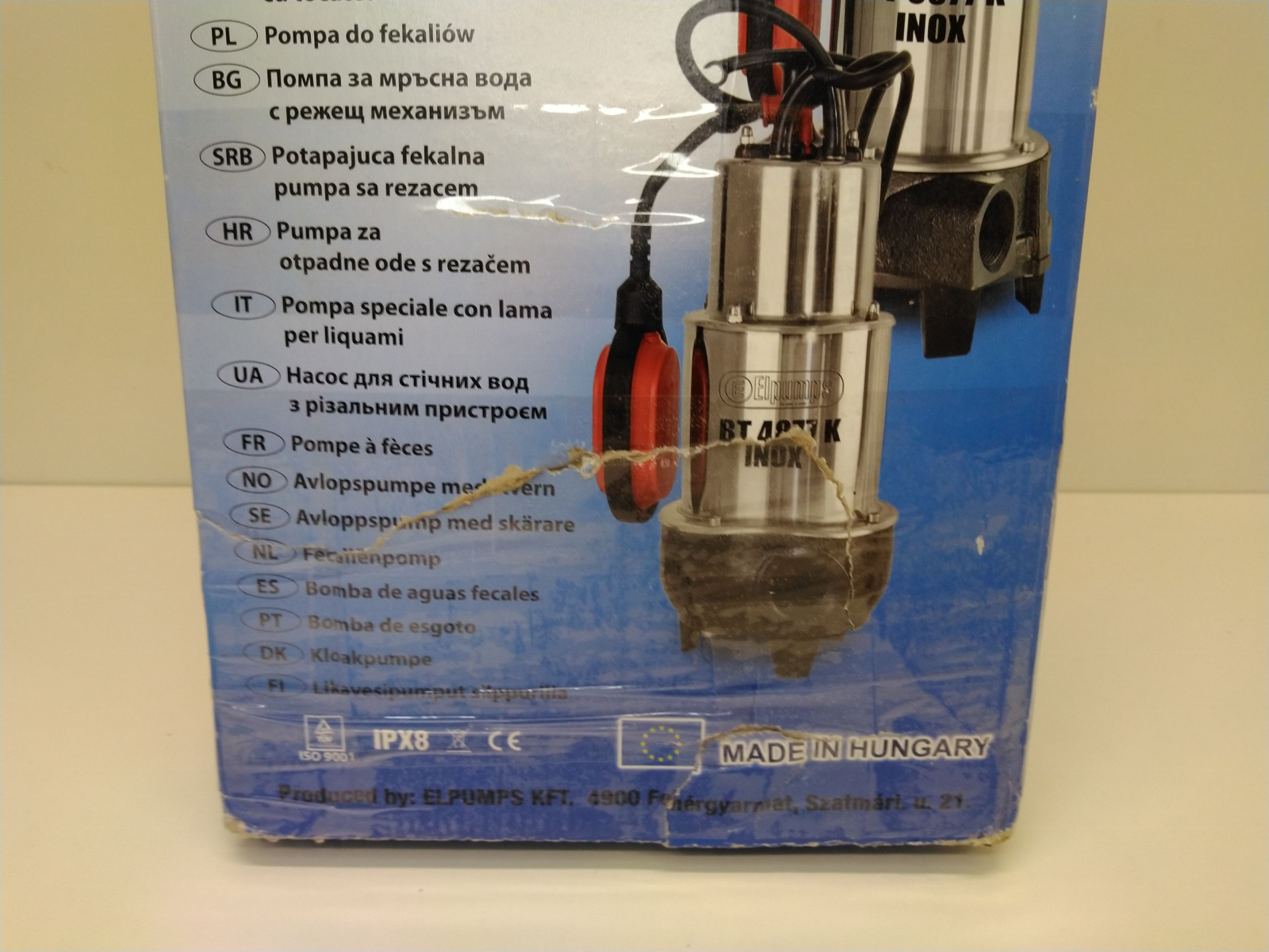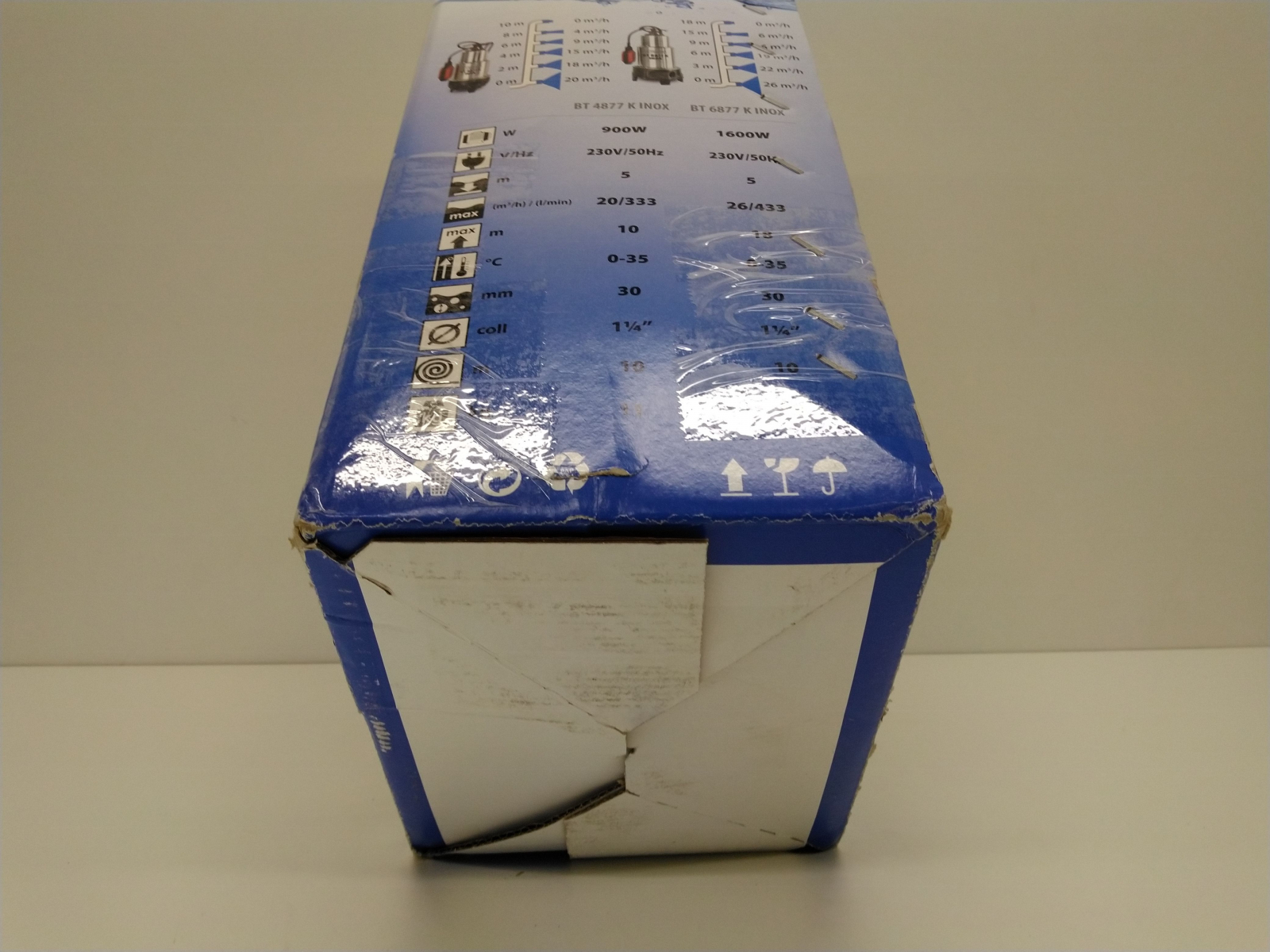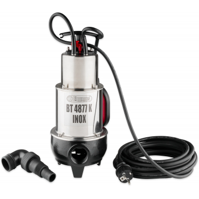Kalové čerpadlo nerezové, příkon 900 W, napětí 230V, max. čerpací výkon 18 000 l/hod, max. výška 10 m, max. průměr pevných příměsí 50 mm, max. tlak 1 bar, průměr potrubí 5/4", výstupní koleno součástí balení, délka kabelu 10 m, max. teplota média 35 °C, hmotnost 15 kg.