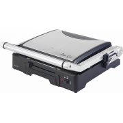 Elektrický stolní gril s velkou grilovací plochou o rozměrech 47x31 cm, dva druhy povrchu - rovný a žebrovaný, nepřilnavá povrchová úprava - možnost grilovat bez oleje, snadné čištění, plynule nastavitelný termostat s automatickou regulací teploty, tepelně izolované rukojeti po s celý popistranách pro snadné přenášení, funkce keep warm pro udržování teploty pokrmů (60 °C), ochrana proti přehřátí, vyjímatelná miska na odkapávání oleje, max. příkon 2300 W.