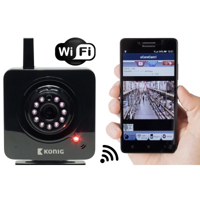 Bezdrátová IP kamera Plug&Play s jednoduchou instalací bez nutnosti složité konfigurace, vzdálené sledování obrazu z kamery kdykoliv a kdekoliv na chytrém telefonu nebo jiném mobilním zařízení, aplikace ke kameře je k dispozici zcela zdarma na Google Play a Apple Store pod názvem celý popis "uCare Cam", lze použít také jako elektronickou chůvičku v síti kamery bez internetu, v budově dosah v okruhu 15-20 m a na volném prostranství 70 m, ke kameře lze připojit více mobilních zařízení najednou, možnost připojení více kamer k jednomu mobilnímu zařízení, rozlišení kamery 640x480 px, snímkovací frekvence 25 fps pro rozlišení 320x240 px, integrovaný mikrofon, vestavěná Wi-Fi, podpora šifrování WPA/WPA2 PSK, detekce pohybu, upozornění na pohyb prostřednictvím e-mailu, noční režim (dosah až 5 metrů), vhodná do interiéru, skladování dat na kartu microSDHC do 32 GB, napájení prostřednictvím dodávaného adaptéru 5V - 1000mA.