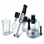 Je velmi jednoduchý na sestavení i ovládání. Otáčky si můžete regulovat. Snížíte tak riziko, že vám při mixování vyprskne obsah nádoby ven na kuchyňskou linku. Disponuje také tlačítkem TURBO, které během mixování vyžene otáčky do maximální rychlosti. V režimu ON je jeho vrchní část podsvícena příjemným modrým LED osvětlením. Tyčová část je odnímatelná. Vyměnit ji můžete za šlehací nástavec pro vyšlehání smetany, bílků nebo domácí majonézy. Ke šlehači je ještě pracovní nádoba o objemu 600 ml. Součástí je i sekáček se srpovitým nerezovým nožem o objemu 500 ml pro sekání bylinek, oříšků i zeleniny. Zkrátka všeobecně použitelný pomocník do kuchyně, kterého si zamilujete.