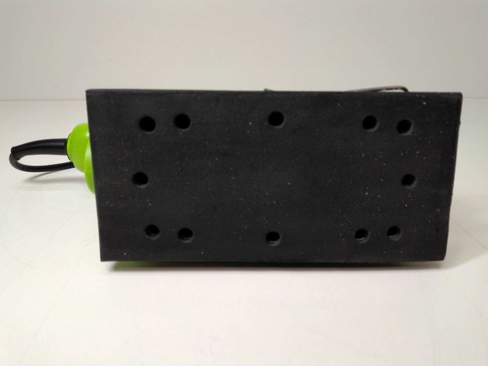 Vibrační bruska, příkon motoru 150 W, otáčky naprázdno 11 000 /min, rozměr plochy 187 x 90 mm.
