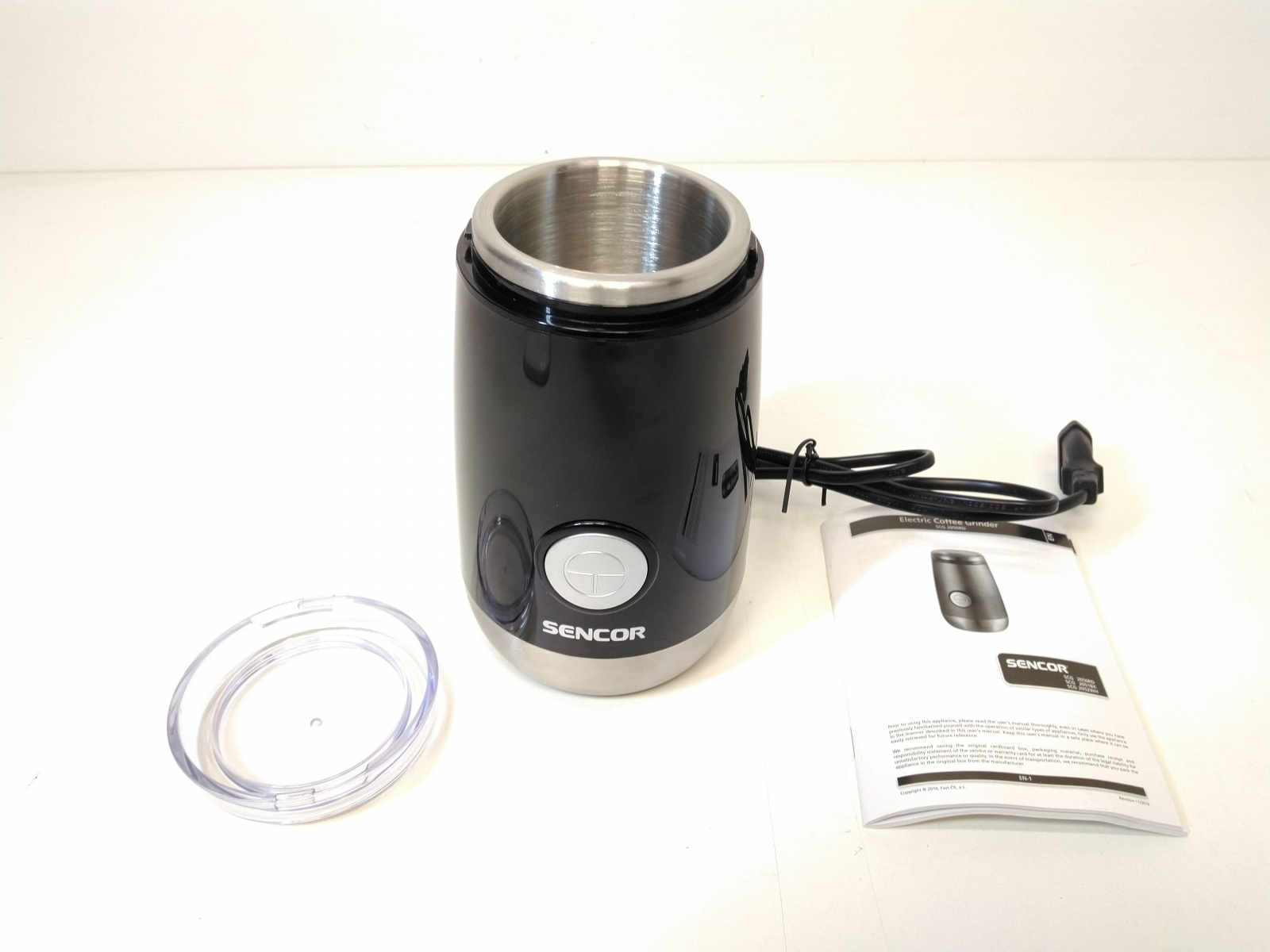 Elektrický mlýnek na zrnkovou kávu, vhodný k mletí zrnkové kávy, ořechů, bylin, máku a koření, zásobník až na 60 g kávových zrn vhodných k přípravě až 12 šálků kávy, rovnoměrné mletí kávy díky speciálnímu nerezovému tříštivému noži, nastavení jemnosti namleté kávy v závislosti na celý popis délce mletí, dlouhodobá životnost a jednoduchá údržba díky zásobníku a tříštivému noži z nerezu, velké bezpečnostní tlačítko zaručující snadnou obsluhu, bezpečnostní pojistka proti spuštění kávomlýnku bez uzávěru, protiskluzové nožky pro snadné a stabilní mletí, uskladnění síťového kabelu v podstavci, příkon 150 W, hlučnost 85 dB, délka síťového kabelu 95 cm, rozměry š×h×v: 116 × 116 × 176 mm, hmotnost 770 g.