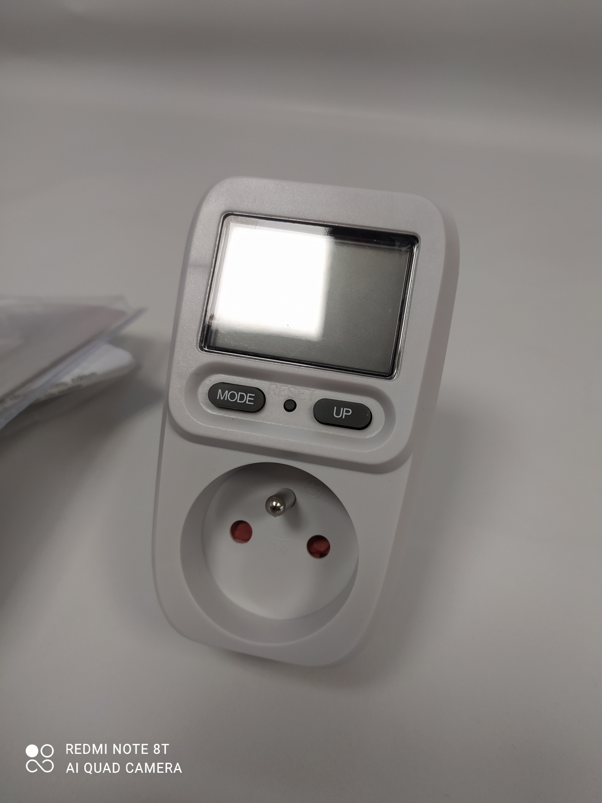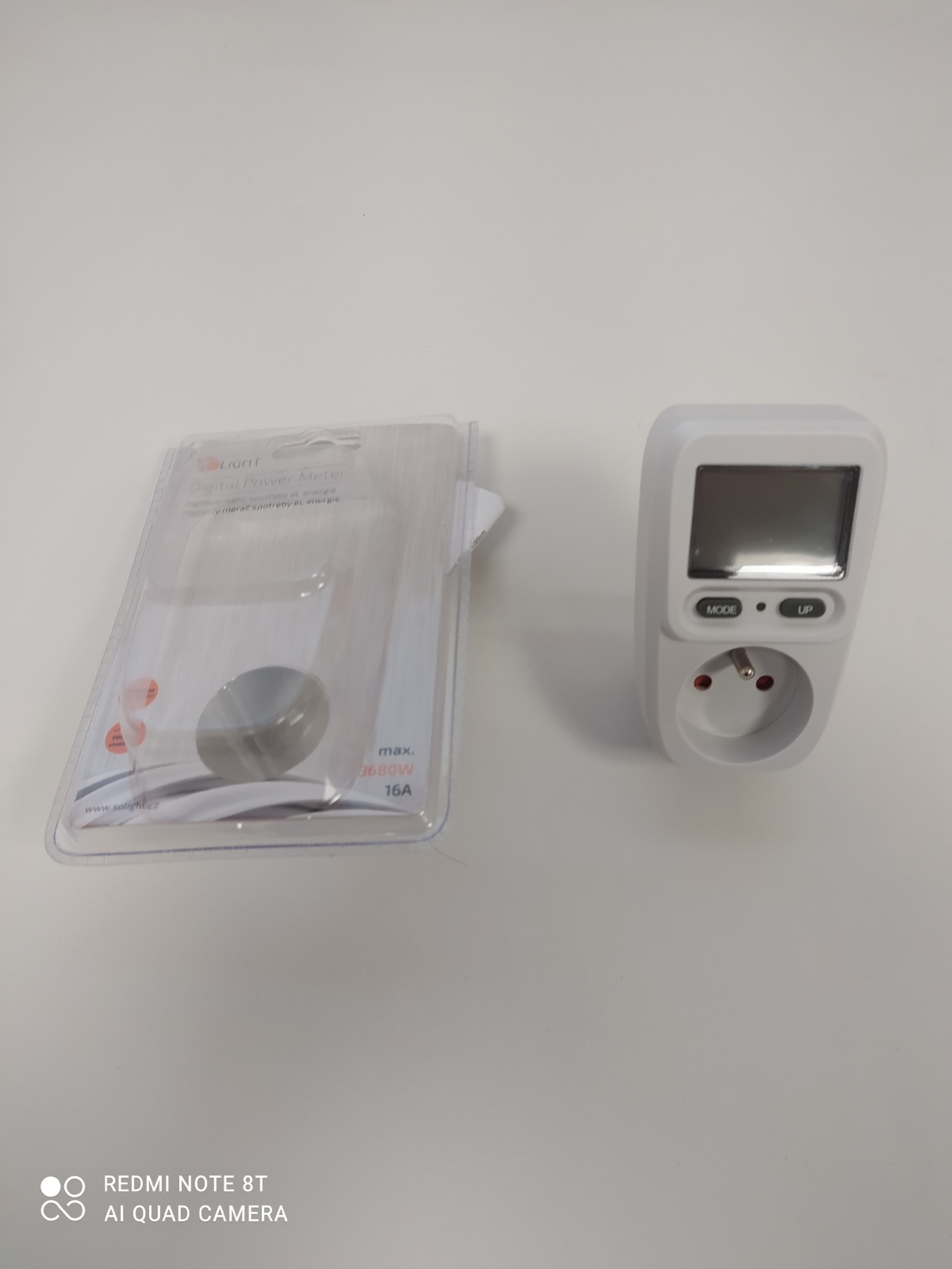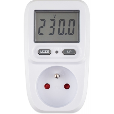 Měřič spotřeby el.energie s přehledným LCD displejem, úhlopříčka 2" (5 cm), max. měřená spotřeba 9999 kWh, min. množství zaznamenávaného příkonu 2W, max. 3680 W/16 A, nastavení ceny za energii, 2 tlačítka pro jednoduchou obsluhu, přesný výpočet ceny a měření spotřebované energie, celý popis dětská pojistka, indikace překročení max. příkonu overload, měření elektrických veličin: napětí, okamžitý odebíraný výkon, integrovaný stabilizátor napětí až do +- 1,5% odchylky od jmenovitého napětí pro přesné měření, pracovní teplota 0 až + 50°C, napájení AC 230V, 50Hz (bez paměťového efektu / bez baterie).