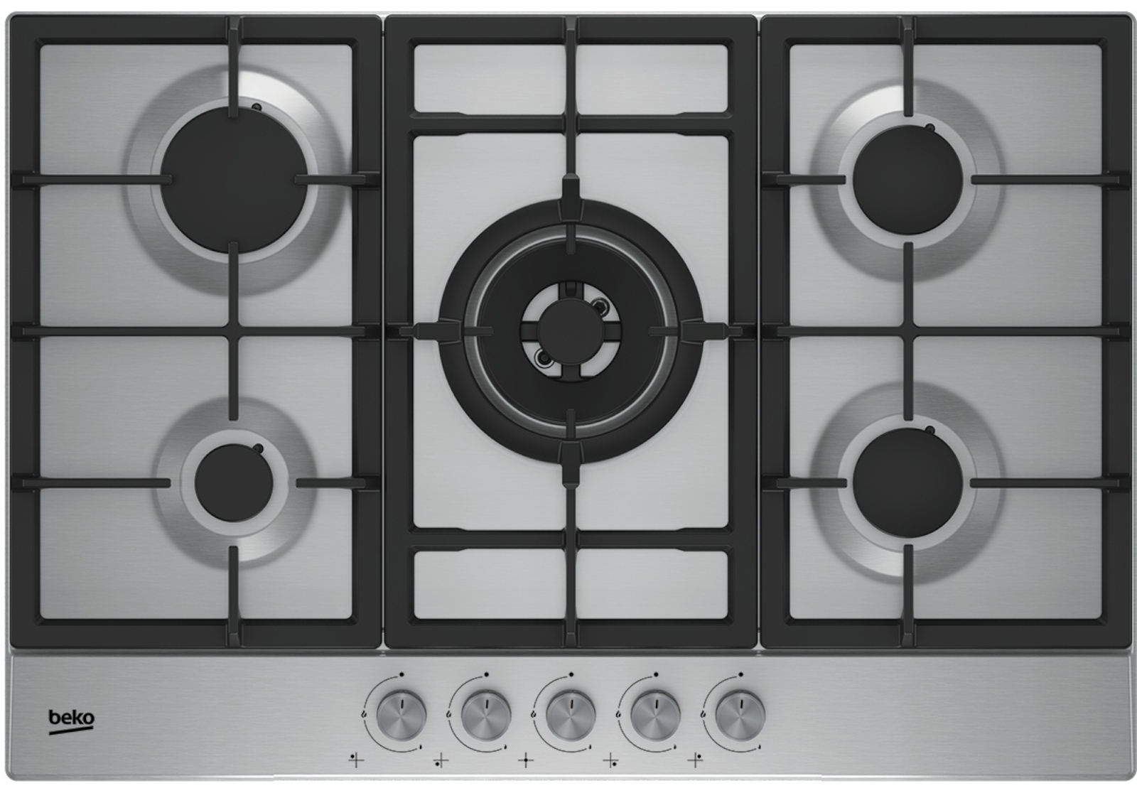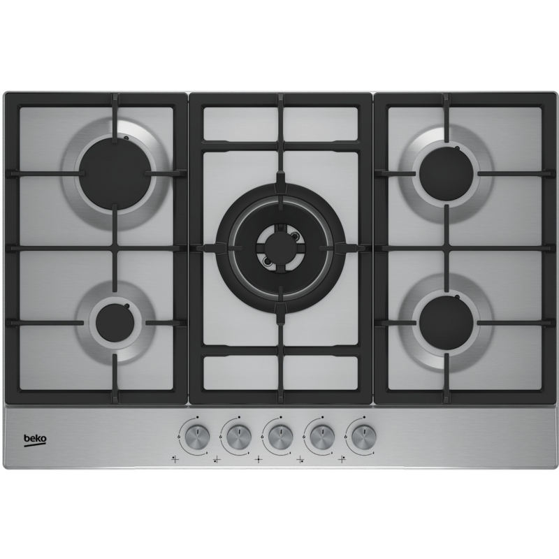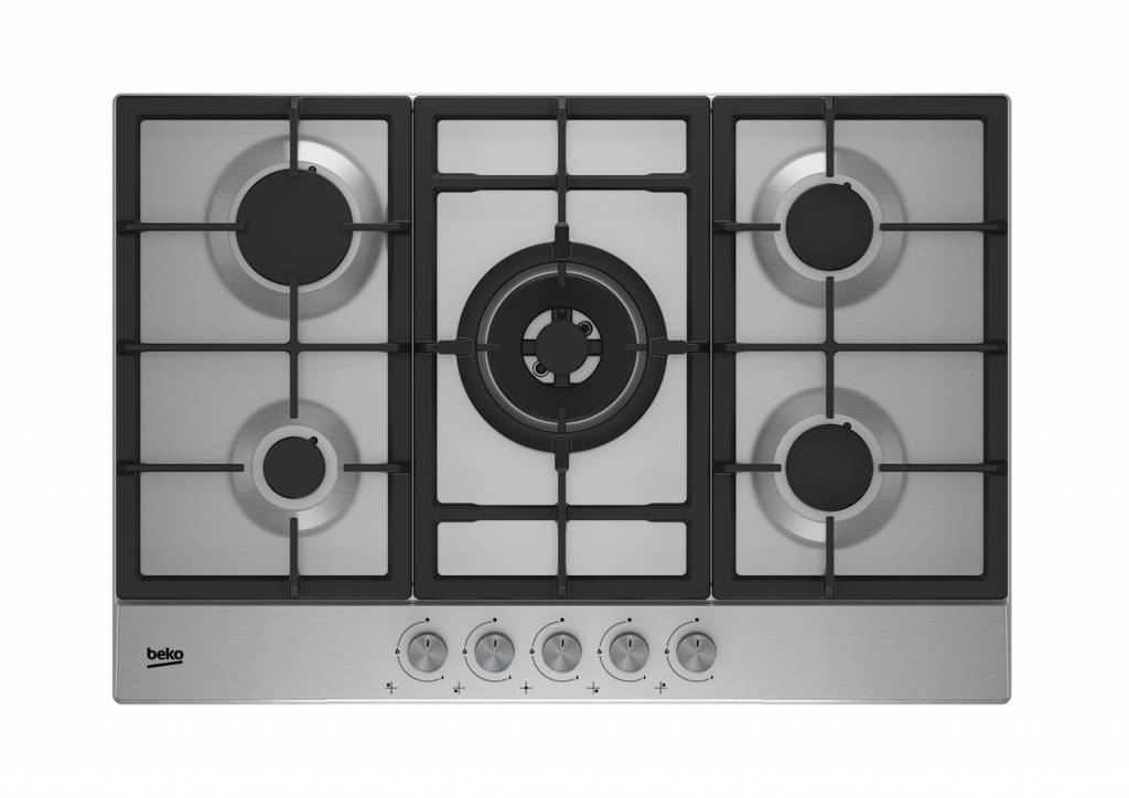 Plynová varná deska s Wok hořákem, šíře 70 cm, 4 varné zóny, integrované zapalování, litinové rošty.