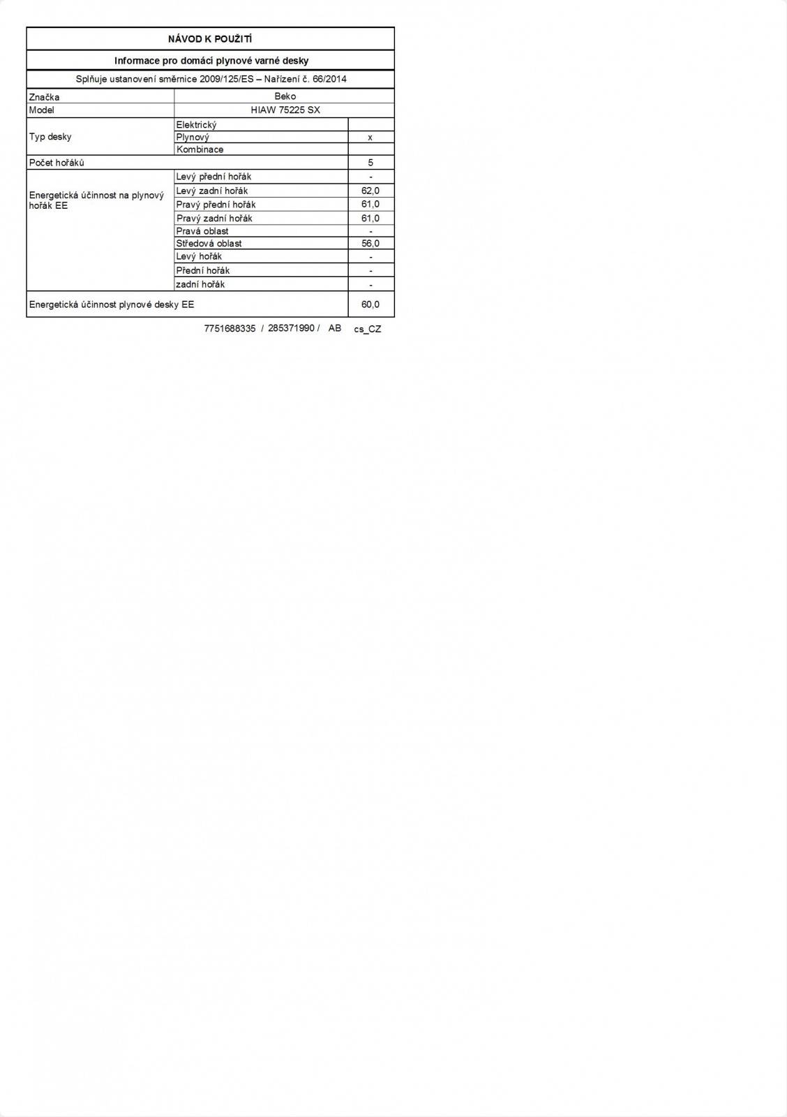 Deska vařidl. BEKO HIAW 75225 SX