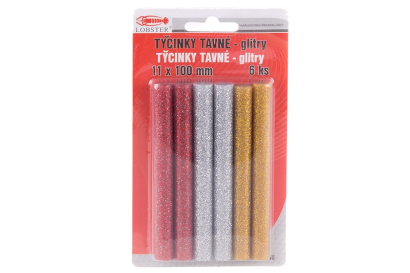 Speciální tavné tyčinky, barevné s perleťovým efektem, průměr 11 mm x délka 100 mm, sada 6 ks.