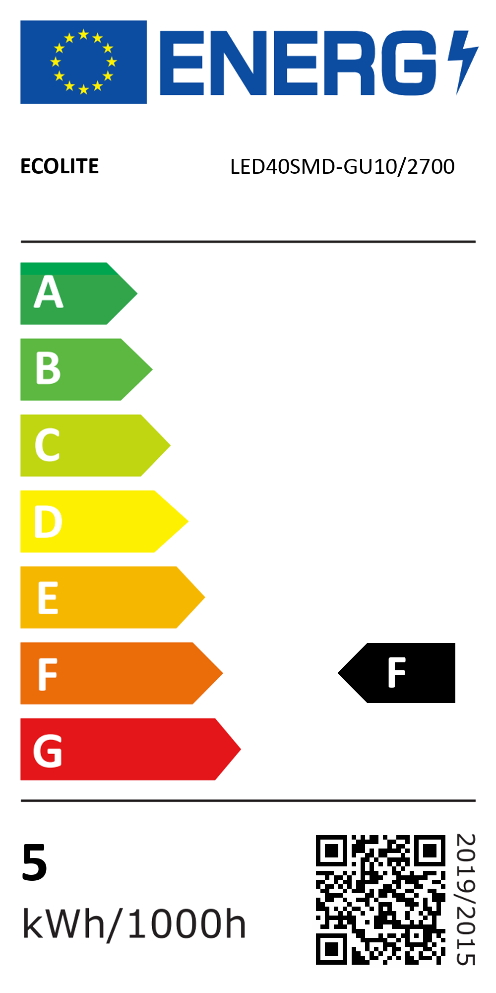 Reflektorová LED žárovka, příkon 5W, svítivost 490lm, patice MR16/GU5,3, napětí 12V, úhel vyzařování 120°, životnost diod 50000h, teplota světla 4100K, energetická třída A+, rozměry: průměr 50 mm, délka 48 mm.