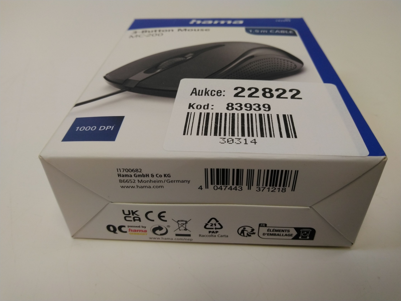 Optická myš, 3 tlačítka, rozlišení 1000 dpi, rozhraní USB, vhodná pro praváky a leváky, Plug and Play, není potřeba žádná instalace, stačí zapojit do portu USB a myš funguje, kompatibilní operační systémy: Windows XP/Vista/7/8/10, Mac OS 10.10 nebo vyšší, černá barva, rozměry: ší celý popisřka x hloubka x výška: 6,4 x 11,4 x 3,7 cm, kabel 150 cm.