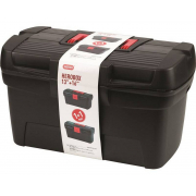 Modulární řada X-BLOCK je určena především profesionálům, kteří denně pracují v obtížných podmínkách. Kufry a boxy řady X-BLOCK jsou modulární a lze je k sobě připojovat pomocí zámkových systémů. Pevně ??navržené kufry jsou vybavené těsněním, zaručující odolnost vůči prachu a vod celý popisě. Dílenské boxy slouží pro skladování a přepravu těžkých nástrojů. Ve víkách vybraných kufrů na nářadí jsou zabudovány hliníkové kolejnice, které umožňují transformaci kufru na kompaktní a stabilní stůl vhodný pro dílenské práce. Žebrovaná konstrukce této řady přispívá k vysoké odolnosti vůči mechanickému poškození. Moduly řady X-BLOCK zaručují přímé zatížení až 120 kg a plní tak funkci stupínku při montážních pracích. Maximální nosnost (kapacita) kufrů je až 50 kg. Parametry: délka 54,6 cm, šířka 38 cm, výška 30,7 cm, hmotnost: 4503 g, objem: 45 l.