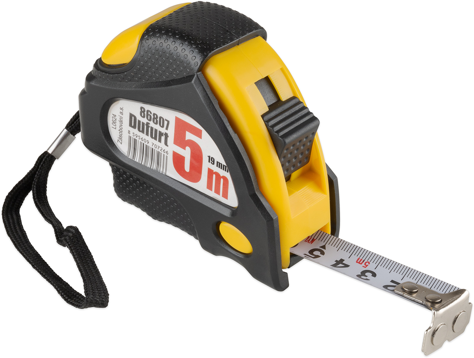 Profesionální svinovací metr Dufurt s délkou 5 metrů, ideální pro přesné měření v domácnosti, v dílně i na stavbě.