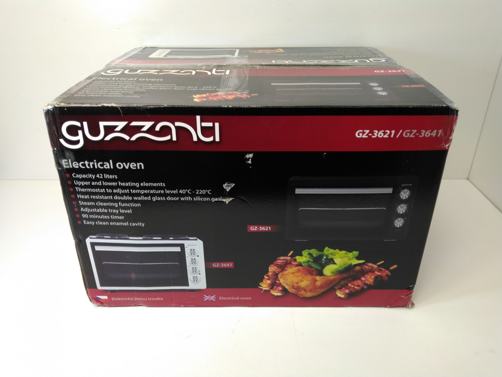 Trouba o objemu 42 litrů, turbo funkce pro rovnoměrnou cirkulaci horkého vzduchu, horní topné těleso 650 W, spodní topné těleso 650 W, 90 minutový časovy´ spínač, smaltovaný vnitřní plášť, plynulé nastavení teploty v rozsahu 40°C - 220°C, smaltovany´ pečící plech, rošt, dvojitá d celý popisvířka, černá barva, napájení 220 - 240 V, příkon 1300W.