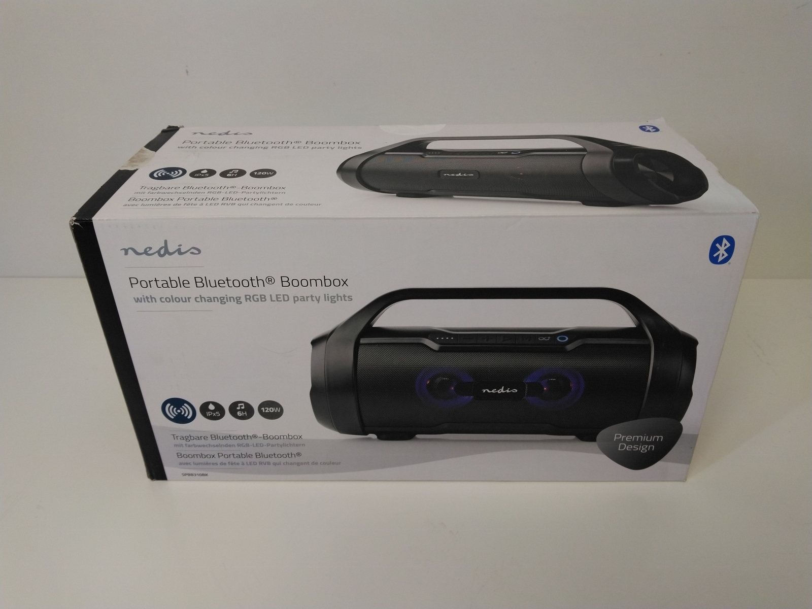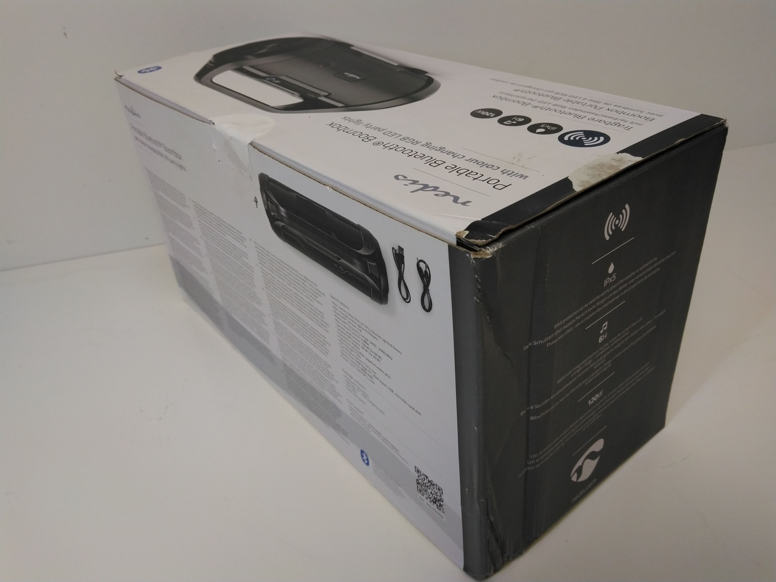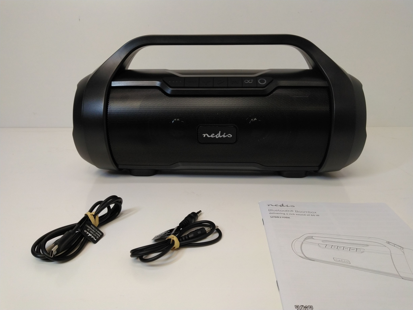 Bluetooth párty přehrávač, maximální výkon 60 wattů, přehrávání až 6 hodin, rozměry š x v x h: 360 x 180 x 135mm, vestavěná Li-Ion dobíjecí baterie s kapacitou 3000 mAh, Bluetooth 5.0, možnost spárování přehrávače s chytrým telefonem či jiným zařízením s rozhraním Bluetooth, True celý popis Wireless Stereo (TWS) - spárujte 2 párty přehrávače a zdvojnásobte tak zvukový zážitek, vstupní konektor 1x 3.5mm, 1x Micro SD, 1x USB-A, pryžové protiskluzové nožičky, funkční dosah do vzdálenosti 10 m, vestavěná rukojeť a módní barevné LED světla na reproduktorech, ochrana IPX5 -voděodolný, barva černá, hmotnost 2,2 kg.