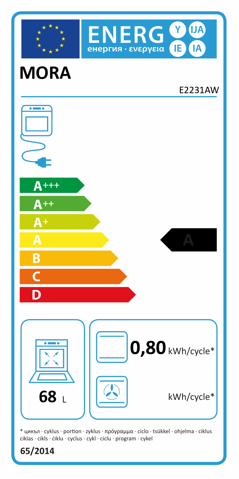 Elektrický sporák se 3 litinovými plotýnkami, průměr plotýnek 2x 180 mm, 1x 145 mm, objem trouby 68 l, elektrická trouba s horním a dolním topným tělesem, funkce EcoClean - čištění parou, příslušenství 1x rošt, 1x mělký plech, chladná dvířka trouby, hmotnost 36,5 kg, rozměry (š x celý popis v x h): 500 x 850 x 594 mm.
