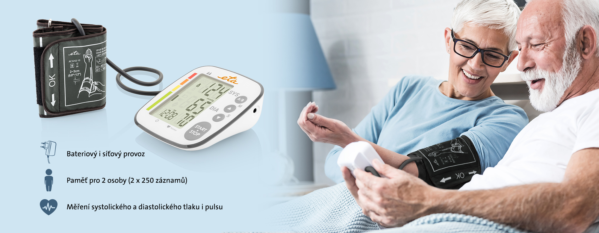 Změřit si tlak v pohodlí domova je opravdu snadné, zvlášť když máte spolehlivého pomocníka. Domácí tlakoměr na paži ETA 3297 90000 vás navíc nenechá na holičkách, ani když mu zrovna dojdou baterky.