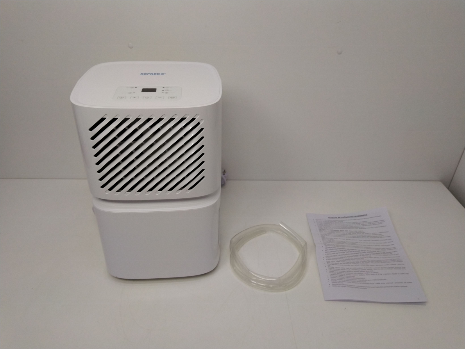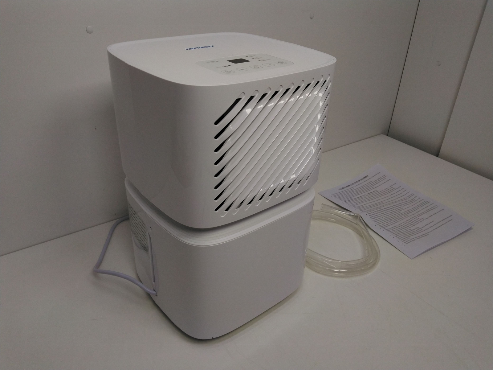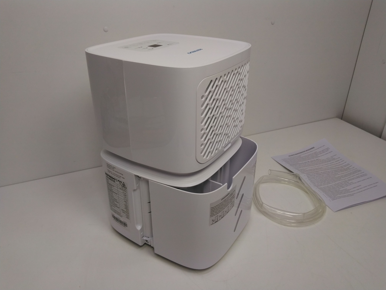 Odvlhčovač s výkonem až 12 litrů za 24 hodin, objem nádoby 2,3 l, vhodná pro prostor 12-30 m2, tichý chod 40 dB, rozměry (š x v x h): 260 x 390 x 250 mm, 3 provozní režimy: odvlhčování, UV čištění vzduchu, vysoušení prádla, nastavení vlhkosti mezi 35% - 80% HR (relativní vlhkost) celý popis, zabudované UV LED světlo, které ničí viry a bakterie obsažené ve vzduchu, přehledný ovládací panel s LED displejem, možnost napojení na průběžný odtok kondenzátu, zvuková signalizace v případě naplnění nádržky na kondenzát, inteligentní systém odtávání jednotky, 24 hodinový časovač, vyměnitelný uhlíkový a HEPA filtr, vlastní autodiagnostika, automatický restart při výpadku elektřiny, kolečka pro snadnou manipulaci