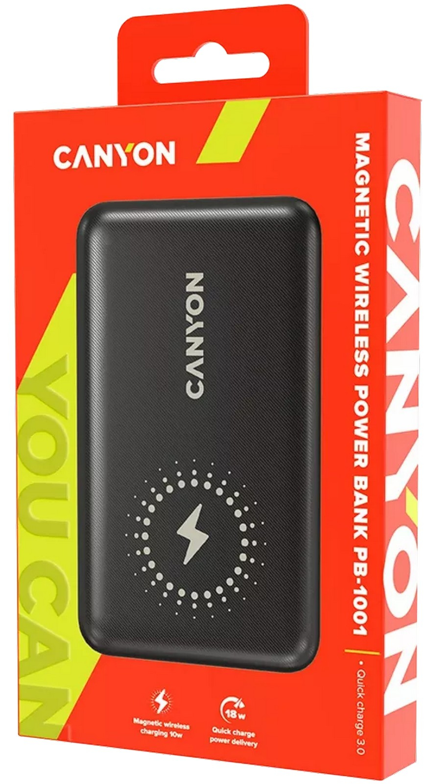 - Obchodní názevPower bank Canyon PB-1001 10000 mAh PD 18W QC 3.0 Wireless 10W Black (CNS-CPB1001B)