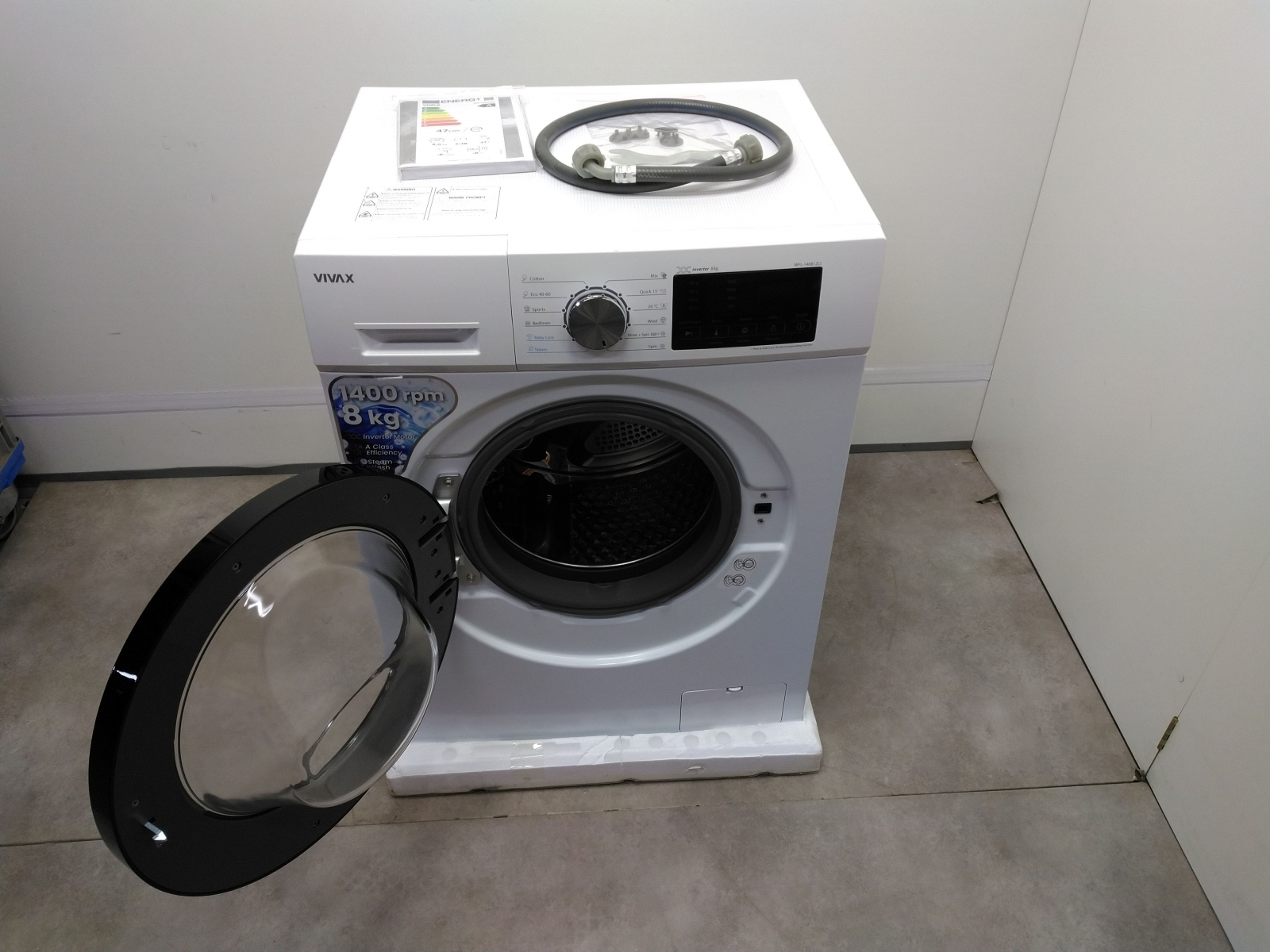 Pračka s předním plněním, energetická třída A, kapacita až 8 kg prádla, odstředování až 1400 ot./min., rychlý program, ukazatel zbytkového času, invertorový motor, parní praní, hmotnost 62 kg, rozměry (š x v x h): 595 x 850 x 510 mm.