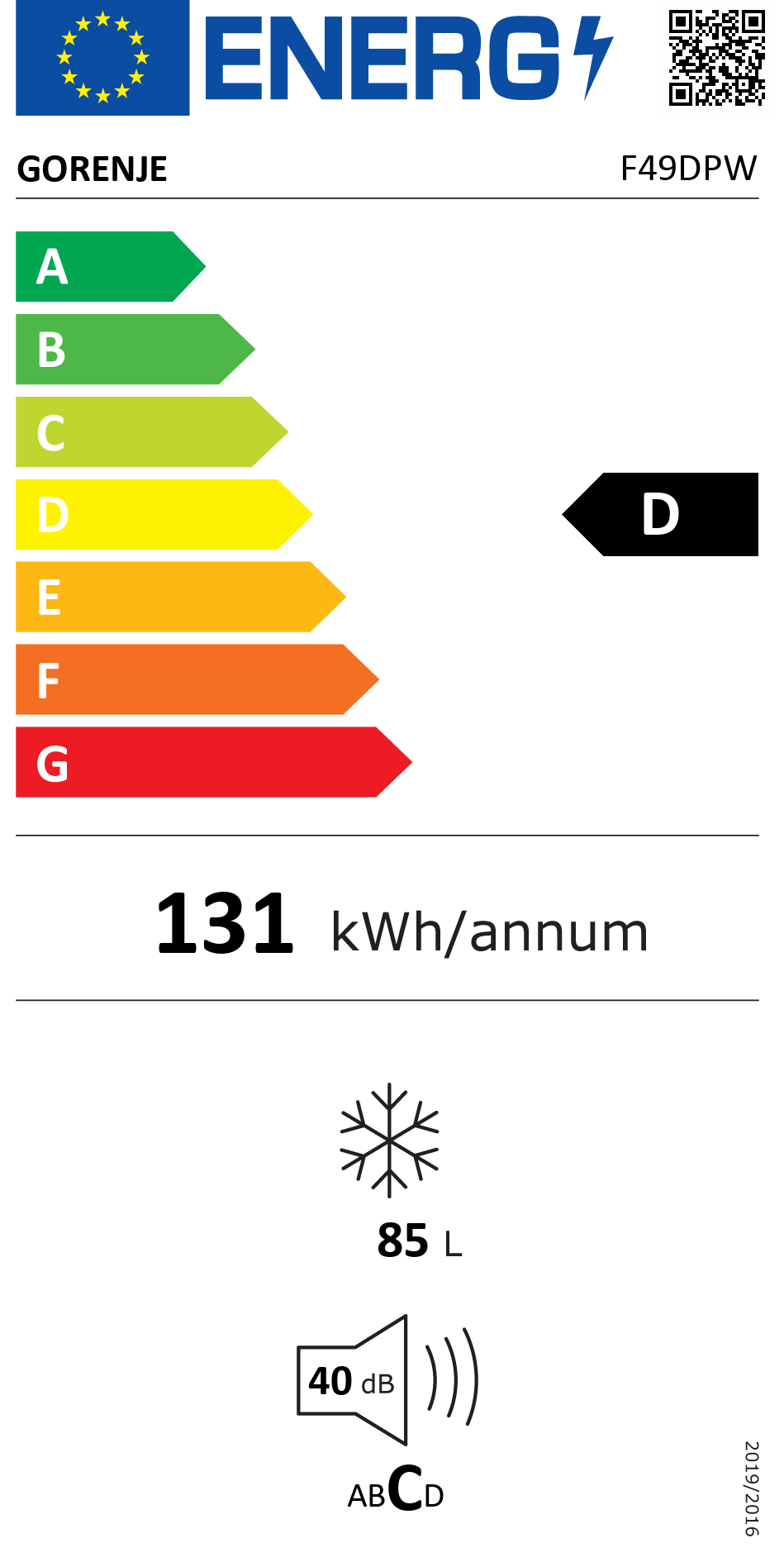 Mraznička o objemu 85 l, energetická třída D, roční spotřeba energie 131 kWh, 3 x zásuvka, hlučnost 40 dB, mrazící výkon 4 kg/24 hod., akumulační doba 15 hod., klimatická střída NS-ST, možnost otočení dveří L/P, hmotnost 37 kg, rozměry (š x v x h): 560 x 845 x 575 mm.