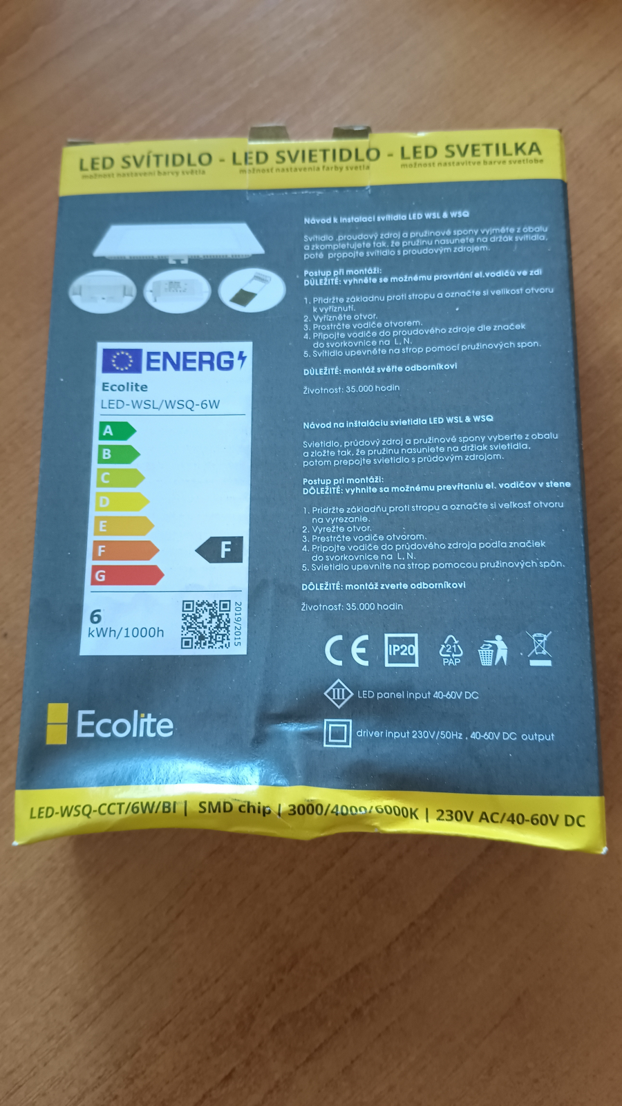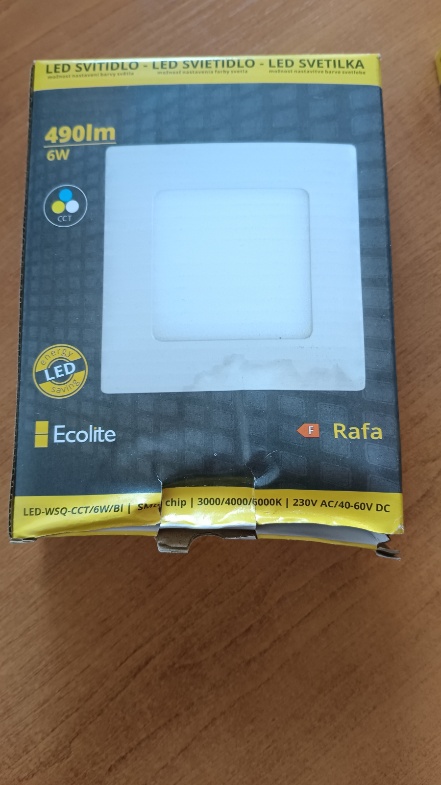 LED světlo pro uchycení do podhledu, možnost změny teploty světla, teplé světlo 3000 K, neutrální 4000 K, studené 6000 K, napětí 230 V, svítivost 490 lm, životnost LED diod 30000 hod, příkon 6 W, úhel vyzařování 140°, rozměr 120x120 mm, výška světla 12 mm, stupeň krytí světlo IP4 celý popis4, trafo IP20. Rozměr otvoru pro vestavbu 105x105 mm.