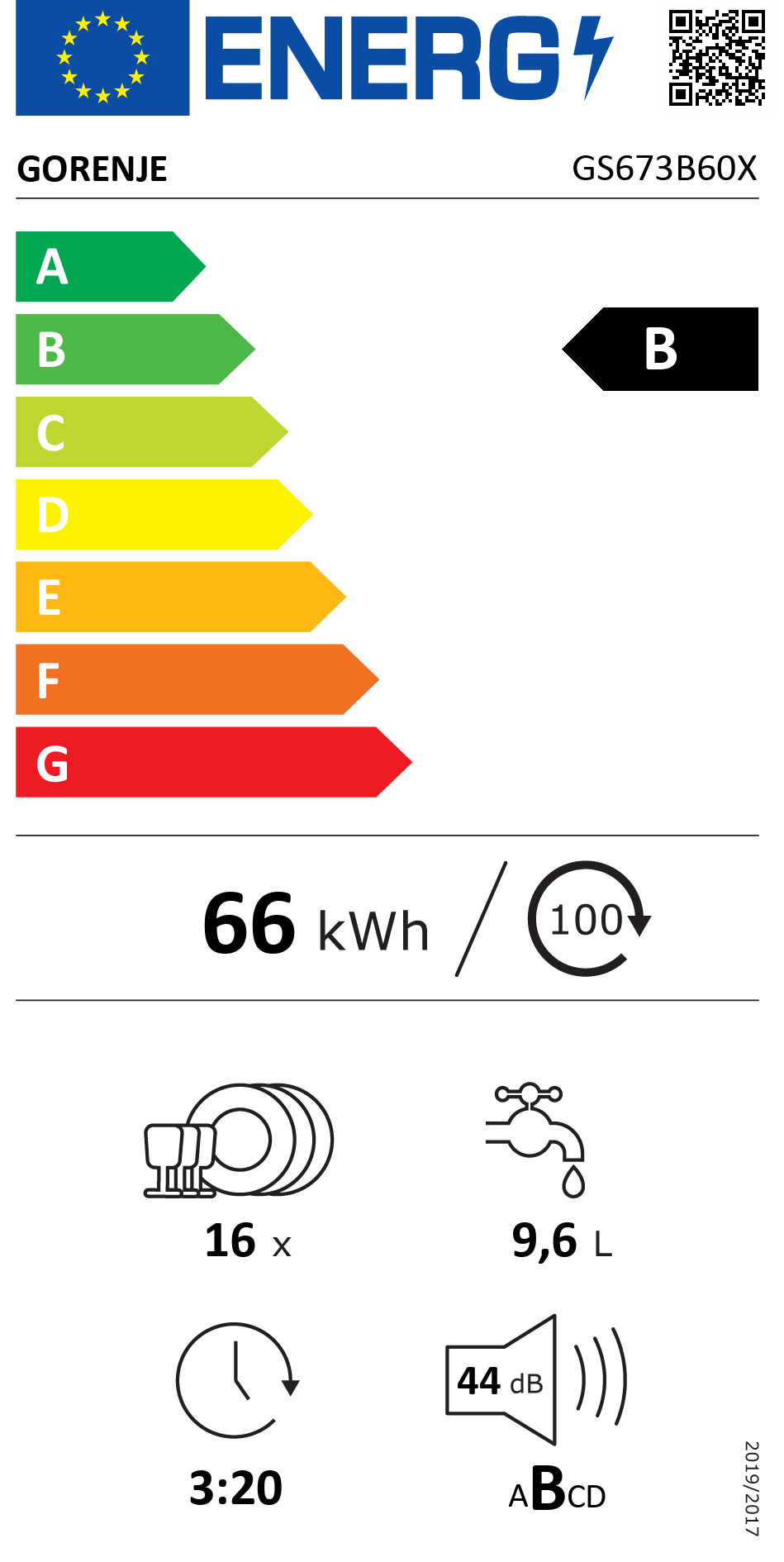 Volně stojící myčka na nádobí pro 16 sad nádobí, 7 programů, energetická třída B, spotřeba vody 9,6 l/cyklus, hlučnost 44 dB. Ovládání pomocí WiFi. Mycí programy: intenzivní mytí, Auto program, ECO program, program Hygiene, křišťálové sklo, 1h mytí, noční mytí. Světelný, zvukový signál na konci programu, program tablety. Funkce SpeedWash - možnost zkrácení programů, TotalDry - automatické pootevření dveří na konci my celý popiscího cyklu, samočistící program Hmotnost 41,5 kg, rozměry (š x v x h): 559 x 846 x 598 mm.