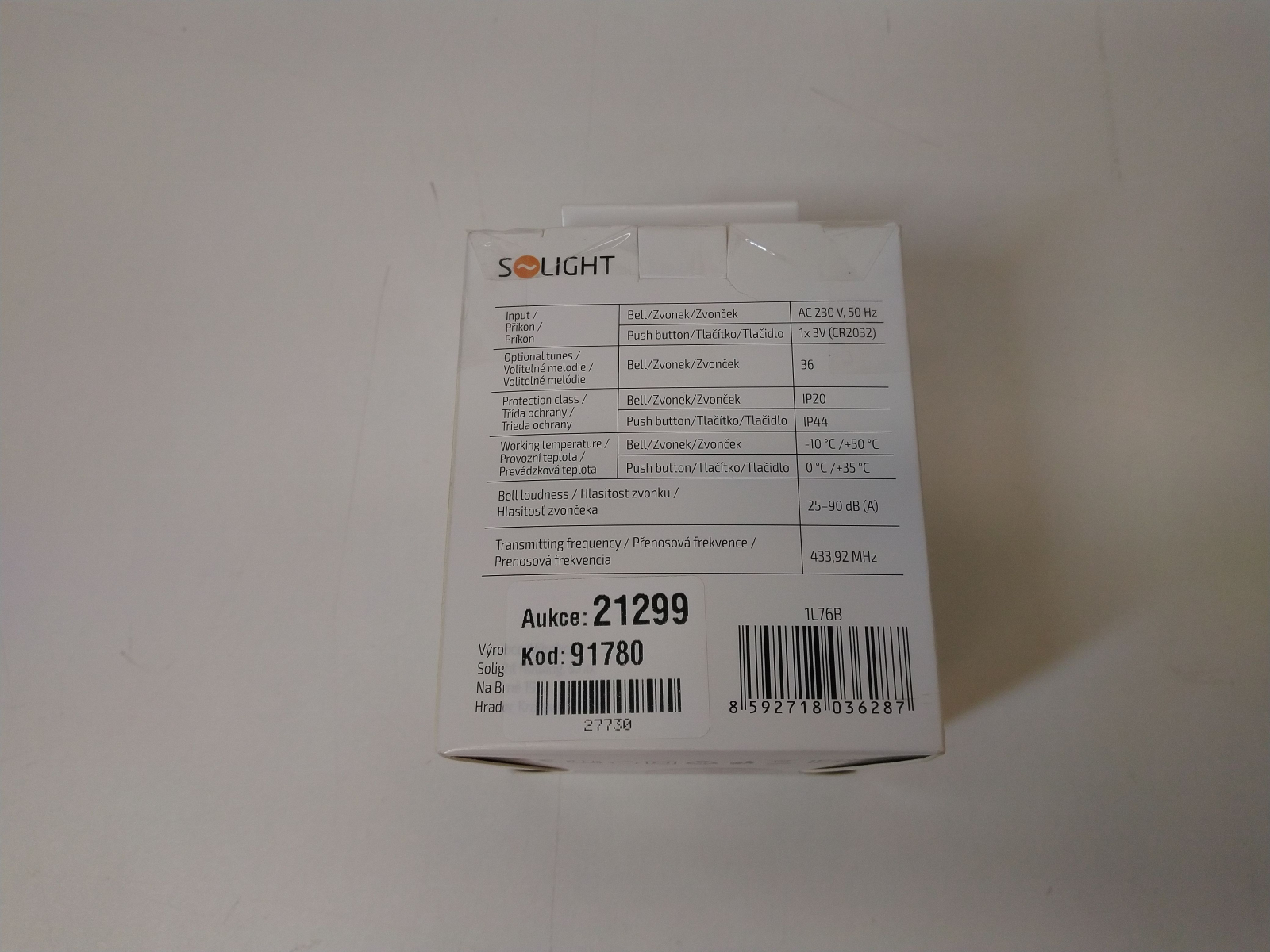 Bezdrátový zvonek s LED indikátorem zvonění na zvonku i tlačítku. Funkce „Learning code“ umožňuje spárování více zvonků nebo tlačítek do jedné skupiny: k jednomu zvonku může být spárováno max. 8 tlačítek, jedno tlačítko může být spárováno s max. 15 zvonky, na každém zvonku může b celý popisýt nastavena jiná melodie. 36 volitelných melodií. Tlačítko s krytem na jmenovku, vodotěsná ochrana IP44. Nastavení hlasitosti zvonku - 4 stupně: 25 - 90dB (90 - 70 - 45 - 25dB). Uchycení tlačítka pomocí samolepící podložky nebo montážních otvorů. Dosah signálu na otevřeném prostranství 180 m. Přenosová frekvence 433.92 MHz. Napájení: tlačítko: 1 x 3V (CR2032) baterie (součástí balení), zvonek: AC 230V - do zásuvky. Spotřeba energie: přijímač (zvonek) v klidovém režimu: <0,3W, vysílač (tlačítko) v pracovním režimu: <10mW. Pracovní teplota: tlačítko -10 °C až +50 °C, zvonek 0 °C až +35 °C.