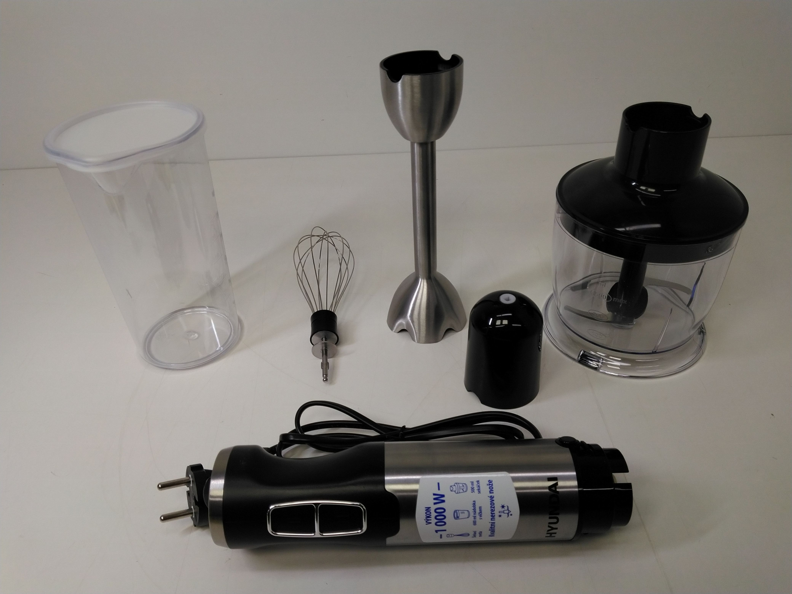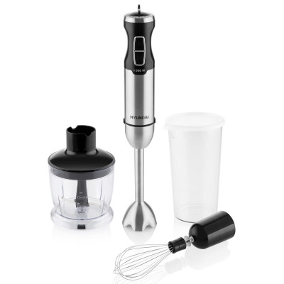 Tyčový mixér s příkonem 1000 W, plynulá regulace otáček, tlačítko pro maximální rychlost, ergonomický tvar rukojeti, poutko na zavěšení. Odnímatelný nerezový tyčový mixér, nerezový šlehací nástavec, pracovní nádoba s víkem o objemu 600 ml, sekáček s nerezovými noži o objemu 500 m celý popisl. Délka přívodního kabelu 1,4 m, hmotnost 1,620 kg, rozměry (š x v x h): 65 x 420 x 70 mm.