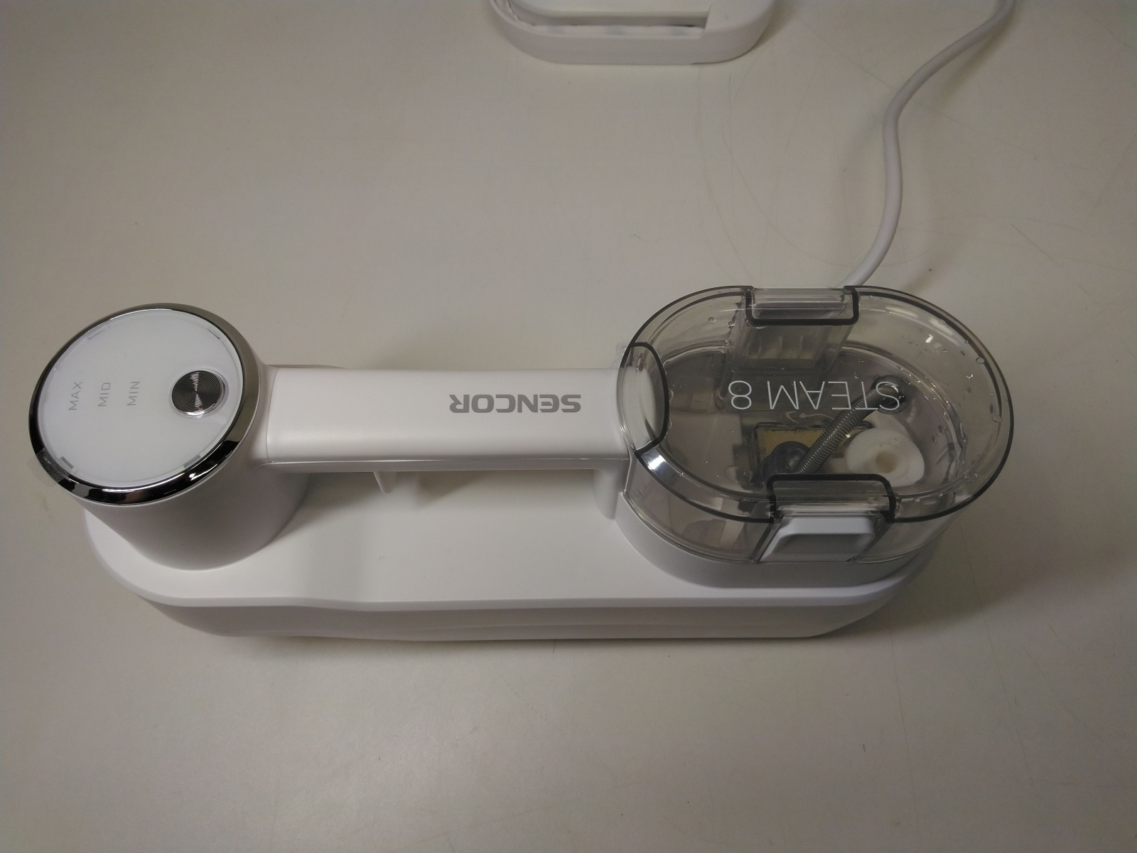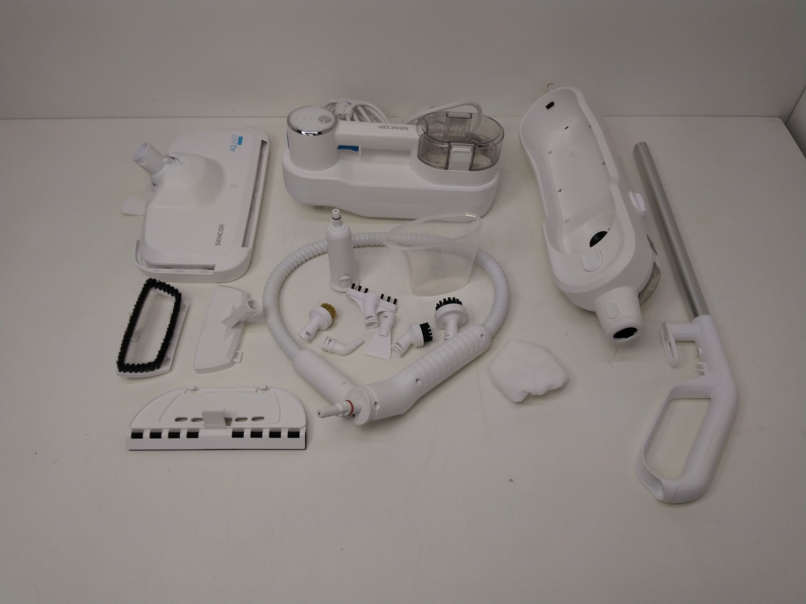 Parní mop a ruční čistič s příkonem 1500 W. Pomocí horké páry účinně dezinfikuje různé povrchy a materiály, odstraňuje špínu, rozpouští mastnotu, stírá nečistoty,ekologické a ekonomické čištění. Rychlé nahřátí páry do 30 s, objem nádržky na vodu 300 ml, zásobník na čistící prostř celý popisedek s objemem 150 ml. Doba provozu s párou až 15 minut. Nastavitelná intenzita páry STEAM 8, nastavit můžete až 3 stupně intenzity-nízký, střední, vysoký. Filtr proti vodnímu kameni pro možnost použití kohoutkové vody. Obsah balení: flexibilní prodlužovací hadice pro těžko dostupná místa, plochá mini škrabka pro odstranění zaschlých usazenin v kuchyni, kartáček na spáry pro vyčištění zanesených spár v koupelně nebo kuchyni, zakřivená parní tryska pro čištění a odstraňování usazenin u umyvadel a dřezů, nylonový kulatý kartáč, mosazný kulatý kartáč, stěrka na okna, rovné povrchy a obklady, nástavec na čalounění s kartáčem, čisticí textilie, mopovací textilie z mikrovlákna. Délka napájecího kabelu 5 m.