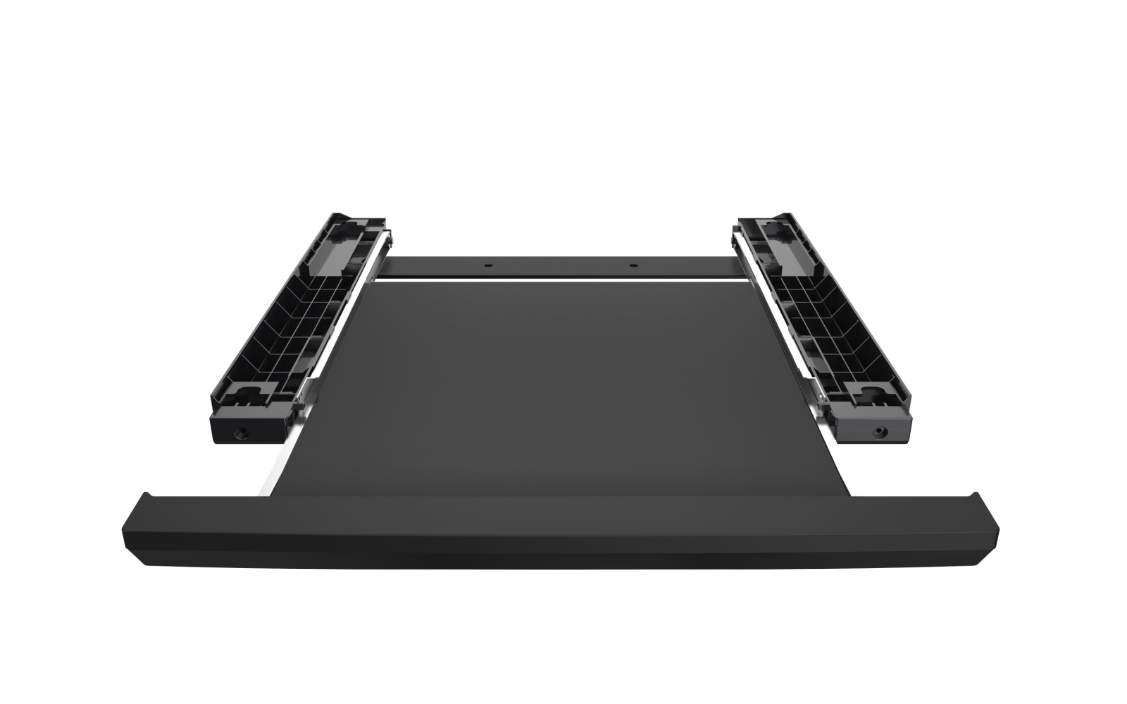 Stohovací mezikus s výsuvnou policí pro pračku Hisense WF5S1245BB a sušičky Hisense DH5S102BB. Rozměry (š x v x h): 595 x 43 x 590 mm.