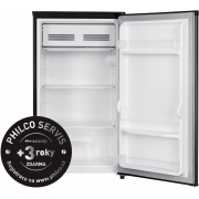 Jednodveřová chladnička o celkovém objemu 41 l a s nízkoteplotním prostorem o objemu 4 l, energetická třída E, spotřeba 79 kWh/rok, hlučnost 39 dB, klimatická třída N-ST, prostor pro 2 l Pet lahve ve dveřích, mechanické ovládání, drátěná polička, hmotnost 14 kg, rozměry (š x v x celý popish): 444 x 510 x 470 mm.