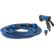 Velmi lehká 3/4" zahradní smrštovací hadice, která se neláme ani nezamotává, je ideální pro pohodlné zalévání. Po naplnění vodou se při tlaku 4 bary prodlouží až na 45 m a po vypnutí vody se automaticky vrací do původní délky. Součástí sady je 4funkční pistole, připojení na kohou celý popistek 3/4" a dvě rychlospojky. Uloženo v plastovém boxu.