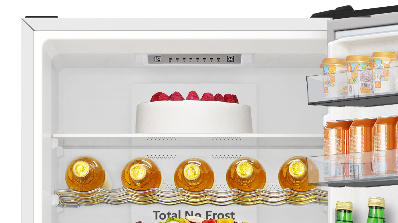 Kombinovaná chladnička s mrazničkou dole, objem chladící části 238 l, objem mrazící části 96 l, energetická třída C, spotřeba za rok 162 kWh, elektronické ovládání, LED display, Total NoFrost, Invertorový kompresor, Fresh Crisper s regulací vlhkosti, Multi Air Flow, hlučnost 35 d celý popisB, rozměry (š x v x h): 595 x 2017 x 579 mm.