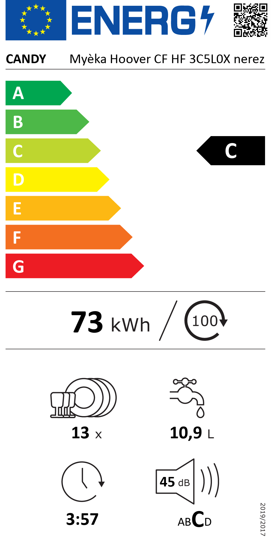 Volně stojící myčka na nádobí pro 13 sad, Speed Drive Inverter motor, 5 základních programů + WiFi, Bluetooth připojení a ovládání myčky pomocí aplikace hOn, energetická třída C, spotřeba vody 10,9 l/cyklus, hlučnost 45 dB. Programy: univerzální 60°C, Intenzivní 75°C, Eco, 45°C, celý popisrychlý 49 min – mytí včetně sušení poloviční náplně, opláchnutí. Funkce: poloviční náplň, multifunkční tablety, odložený start 3, 6, 9 hod, Auto Open – automatické otevření dvířek na konci cyklu, dětská pojistka, ukazatel nedostatku soli, elektronické nastavení tvrdosti vody, nastavení zvukové signalizace, uložení posledního programu do paměti. Hmotnost 43 kg, rozměry (š x v x h): 600 x 850 x 600 mm.