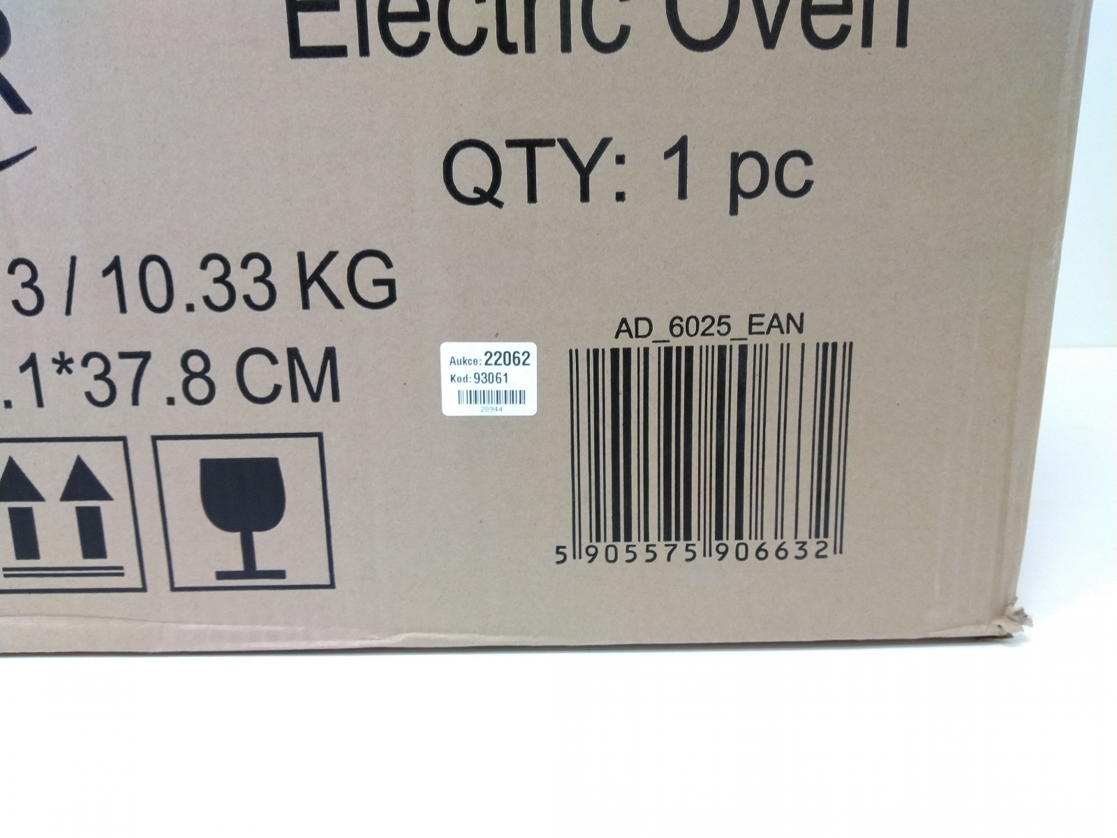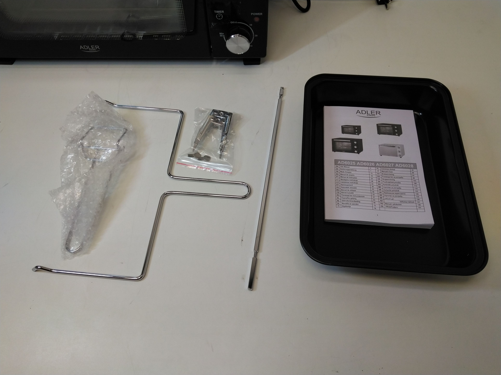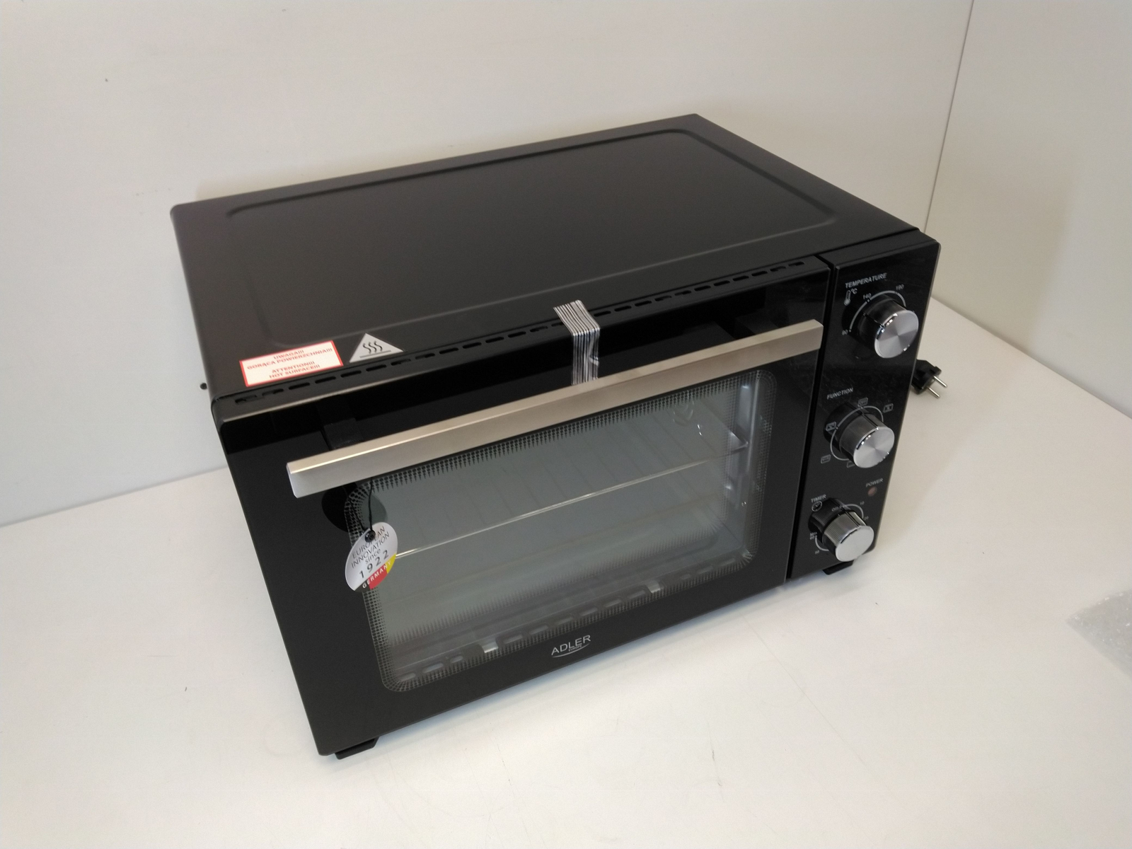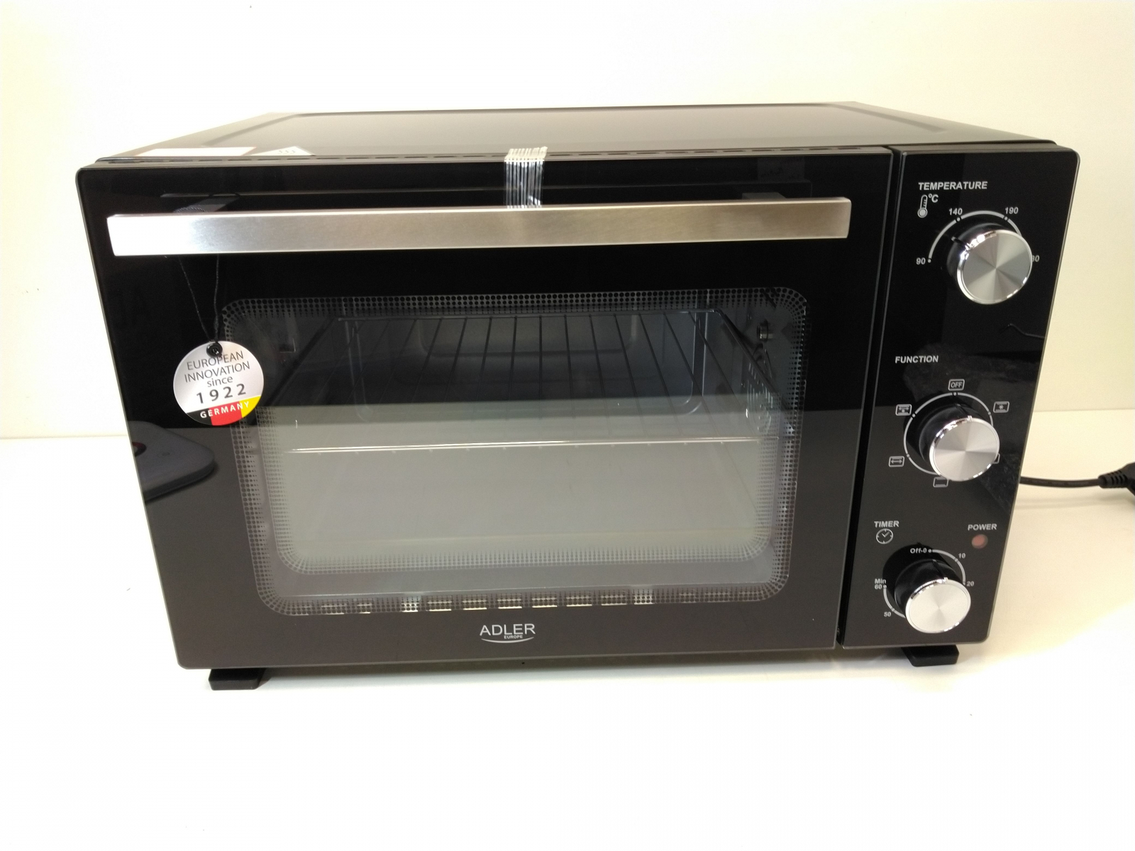 Elektrická trouba o objemu 35 litrů, příkon trouby 1500 W, nastavení teploty 90 - 230 °C, časovač 0 - 60 minut, zvuková signalizace, 5 režimů pečení, vnitřní osvětlení trouby, 2 skla ve dveřích, příslušenství: rošt na pečení, plech na pečení, otočný rožeň, rukojeť na vyjmutí gril celý popisu, rukojeť na vyjmutí roštu, hmotnost 9,69 kg, vnitřní rozměry (š x v x h): 365 x 330 x 270 mm, vnější rozměry (š x v x h): 511 x 399 x 332 mm.