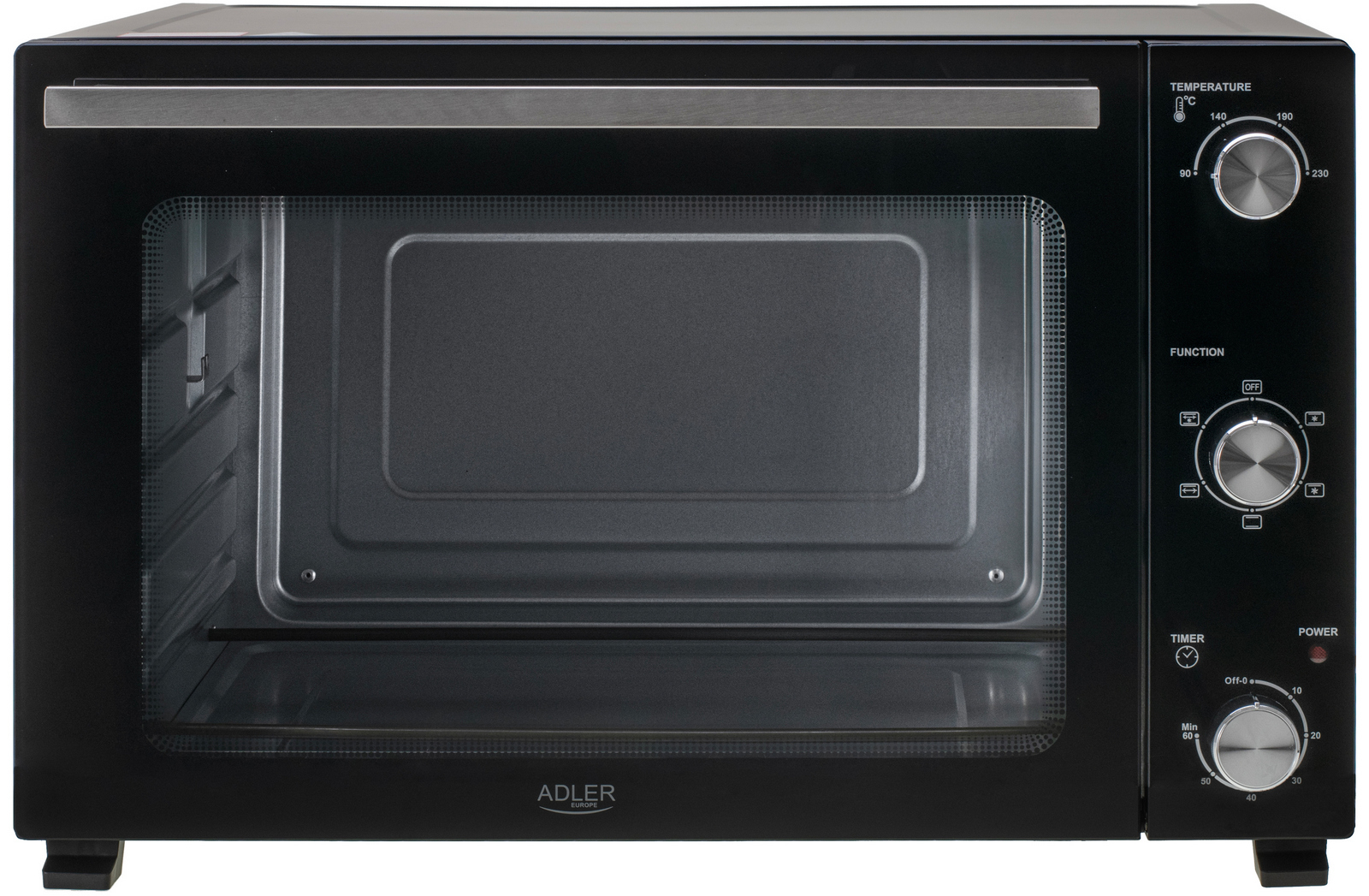 Elektrická trouba o objemu 48 litrů, příkon trouby 1800 W, nastavení teploty 90 - 230 °C, časovač 0 - 60 minut, zvuková signalizace, 5 režimů pečení, vnitřní osvětlení trouby, 2 skla ve dveřích, příslušenství: rošt na pečení, plech na pečení, otočný rožeň, rukojeť na vyjmutí gril celý popisu, rukojeť na vyjmutí roštu, hmotnost 11,75 kg, vnitřní rozměry (š x v x h): 425 x 360 x 305 mm, vnější rozměry (š x v x h): 571 x 430 x 369 mm.