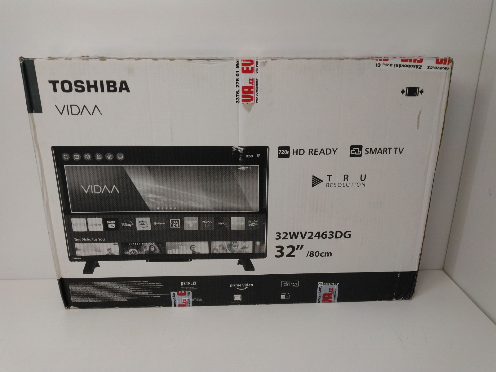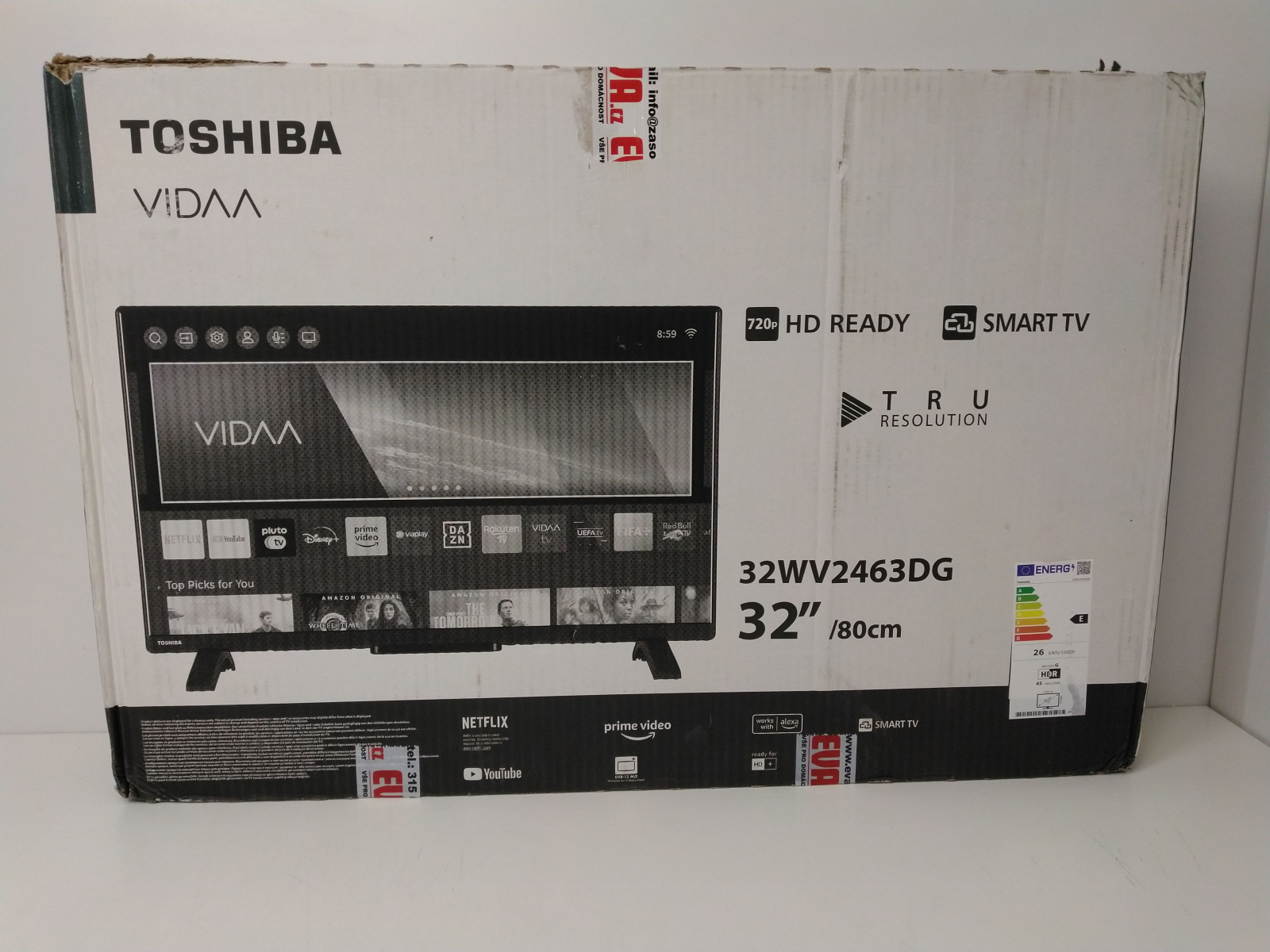 HD Smart LED televizor, úhlopříčka 80 cm (32"), rozlišení 1366 x 768 px., tuner DVB-T/T2/C/S/S2 HEVC, HbbTV, energetická řída E, operační systém Vidaa, HDR10, TRU Micro Dimming, TRU Resolution, 2x HDMI, 1x USB, 1x AV vstup, výstup na sluchátka, digitální koaxiální výstup, Etherne celý popist RJ45, WiFi, CI+, EPG, Teletext, nahrávání na USB, Screen Mirroring, Netflix, YouTube, OnePlay, Disney+, Max a další, webový prohlížeč, Media Player, VESA 75 x 75 mm, hmotnost 5,3 kg, rozměry (š x v x h): 7473 x 732 x 173 mm.