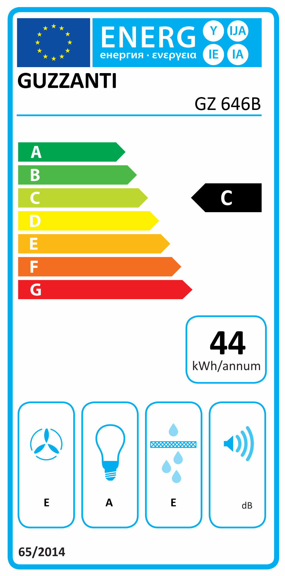 Odsavač par v energetické třídě C, 3 rychlosti výkonu, 2 x 2 W LED osvětlení, tukový filtr proti mastnotám, výstup 120 mm, odtah horní, minimální výkon odtahu 98 m3/hod, maximální výkon odtahu 165 m3/hod, minimální hlučnost 65 dB(A), max. příkon 70 W, hmotnost 4 kg, rozměry (š x celý popisv x h): 595 x 112 x 460 mm.
