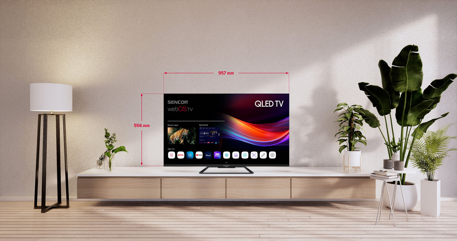 UHD Smart QLED televizor, úhlopříčka 108 (43"), rozlišení 3840 x 2160 px., tunery DVB-T/T2/C/S/S2 HEVC, energetická třída F, operační systém webOS vyvinutý společnost LG, AI ThinQ - hlasový asistent, aplikace na chytrý telefon, Netflix, YouTube, OnePlay, Disney+, Max a další, Hbb celý popisTV, WiFi, Miracast, Airplay, Bluetooth 5.0 s podporou LG Sound Sync, vestavěný systém 4 reproduktorů, zvukový výkon 2 x 10 W, Dolby Digital Plus, ekvalizér, 3x HDMI, AV in, RJ45, optický výstup, 2x USB, sluchátkový výstup 3,5 mm Jack, HDMI CES SIMPLINK,CI+, přehrávání z disku, nahrávání na disk, Timeshift, EPG, Teletext, hodiny, časovač, rodičovský zámek, hotelový režim, VESA 200 x 200 mm, obsah balení: magický ovladač, základní ovladač, rychlý průvodce, stojan, hmotnost 6,5 kg, rozměry (š x v x h): 957 x 590 x 280 mm.