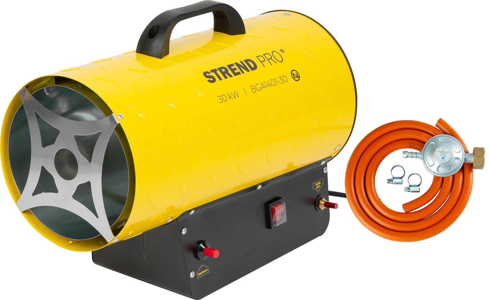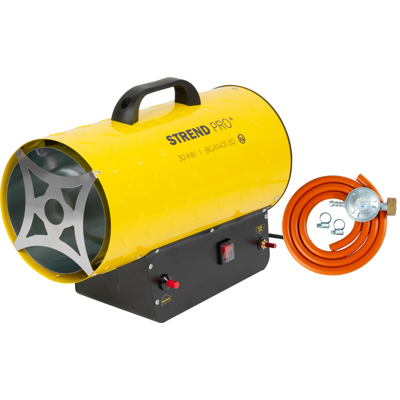 Plynový ohřívač nabízí výkon až 30 kW, piezo zapalování a průtok vzduchu 650 m3/h. Spotřebuje 2,18 kg plynu za hodinu a je vybaven ochranou proti přehřátí, robustním nerezovým rámem a rukojetí pro snadnou manipulaci. Tato plynová turbína je vhodná pro rychlé a efektivní vytápění celý popisprostor do 450 m3. Hmotnost 6,8 kg, rozměry 475 x 225 x 360 mm. Dodáváno vč. sady pro připojení k plynové lahvi (hadice 1,5 m, spony, regulátor).