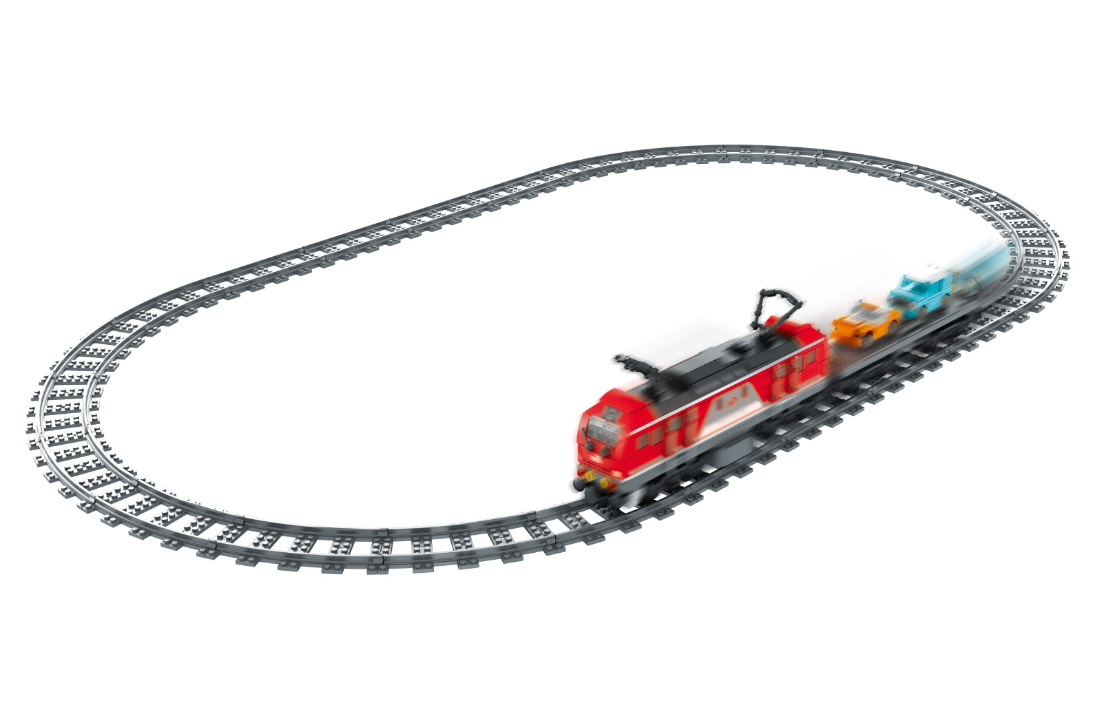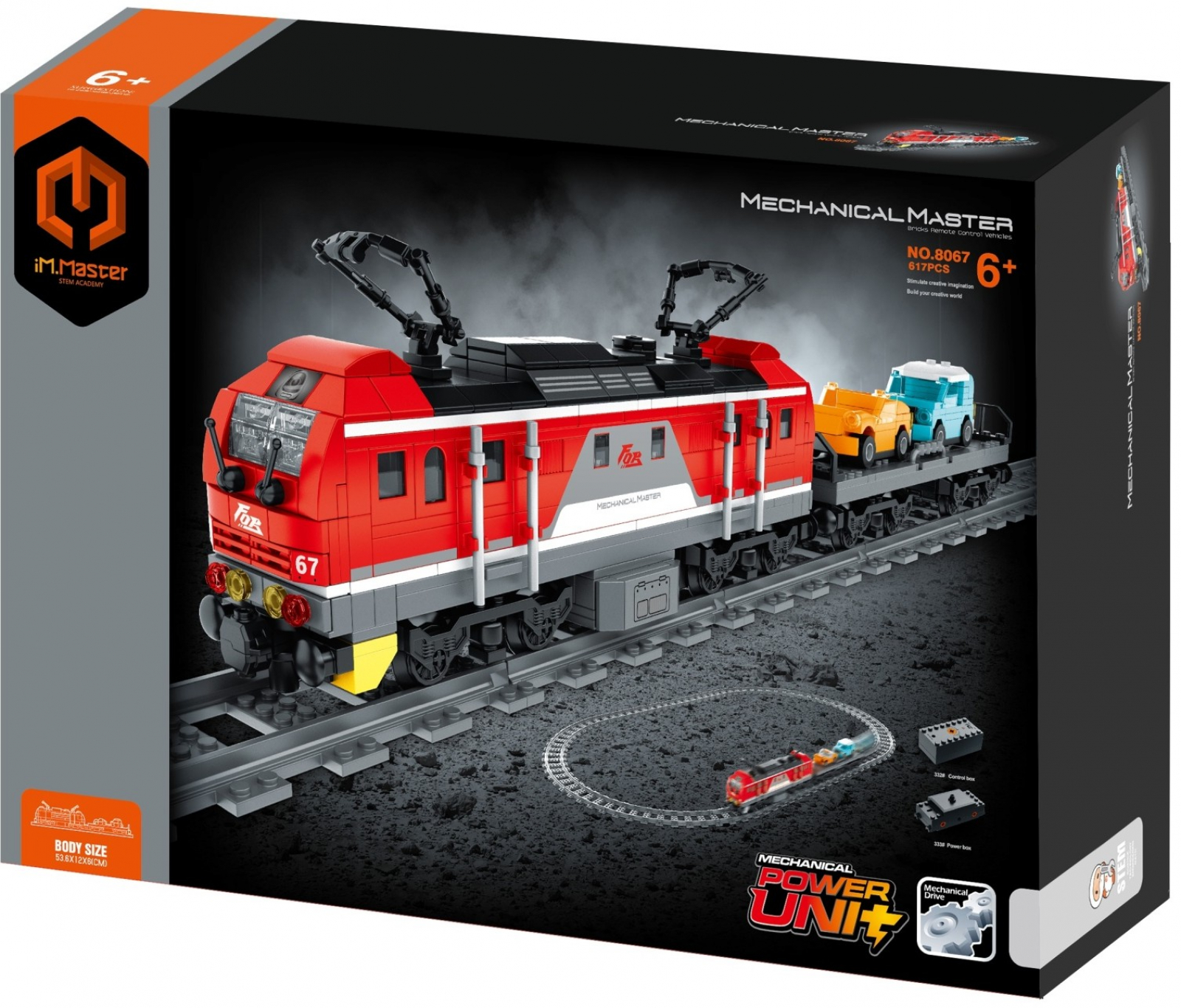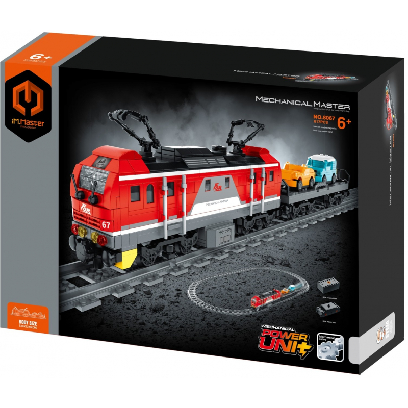 IM. Master stavebnice vlak s auty. Rozměry vlaku 53,6x12x6 cm, železnice 123x71,8 cm. 617 dílků. Vestavěný bateriový pack 400mAh 3.7 V lithium do vlaku součástí. Nastavení rychlosti jízdy vlaku, změna směru jízdy dopředu a dozadu. Přepínač ON/OFF. Kolečko pro nastavení směru jízd celý popisy na střeše vlaku. Doporučený věk od 6 let. Nevhodné pro děti od 3 let.