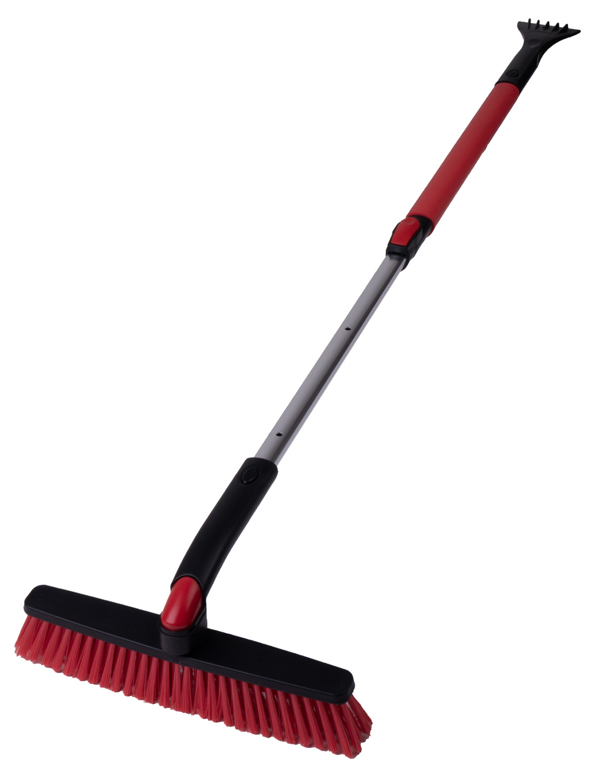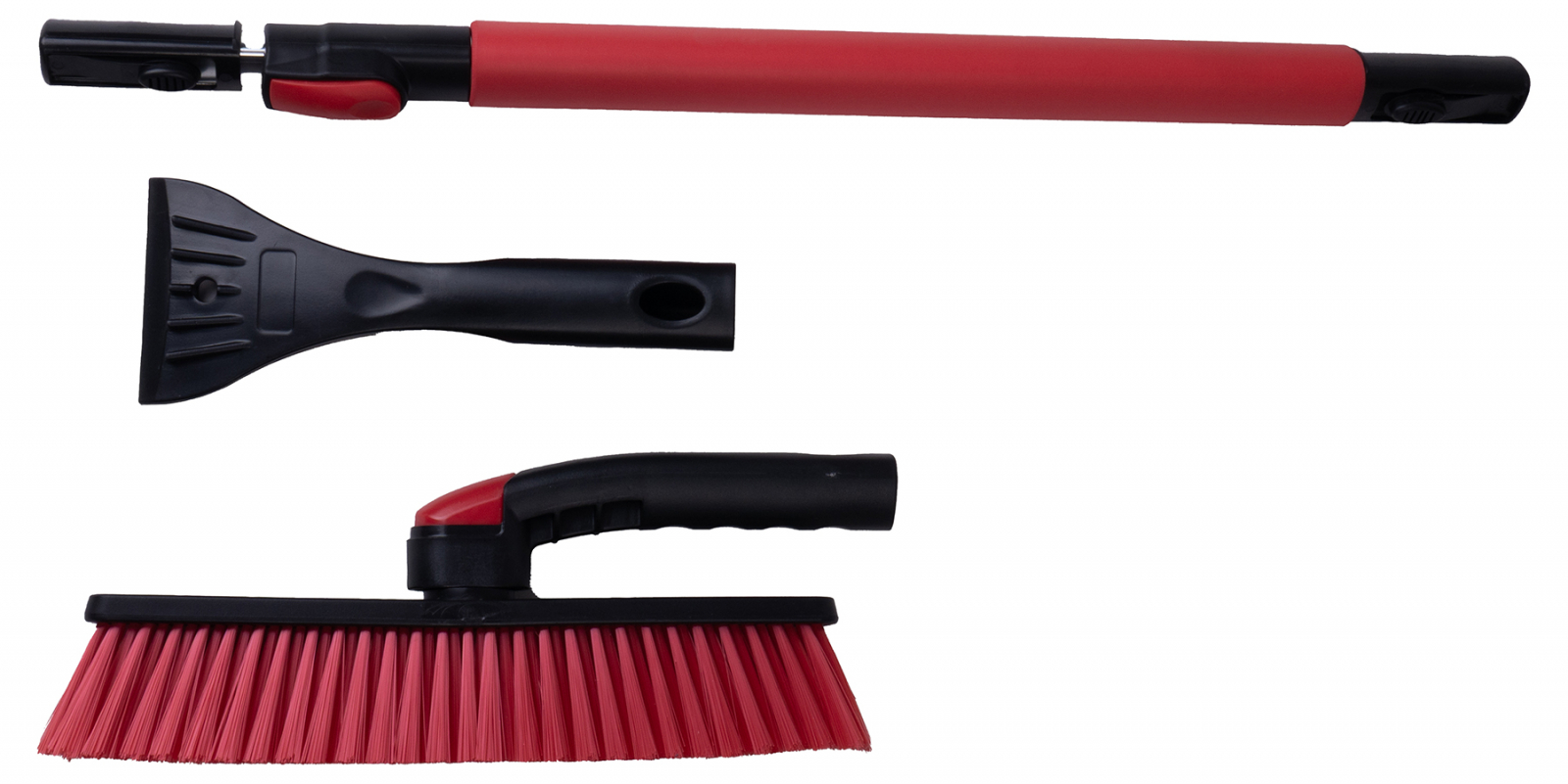 Smetáček se škrabkou. Rozšířená teleskopická rukojeť: nastavitelná délka od 91 cm do 130 cm je ideální pro SUV, dodávky, mikrobusy a nákladní vozidla. Smetáček i stěrku lez použít samostatně. Aretace smetáčku ve 4 polohách. Barva červená.