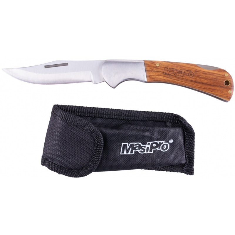 85 mm dlouhá čepel z nerezavějící oceli, dřevěné střenky, nylonové pouzdro na opasek. Celková délka otevřeného nože 195 mm, délka v zavřeném stavu 110 mm. Bezpečnostní pojistka.