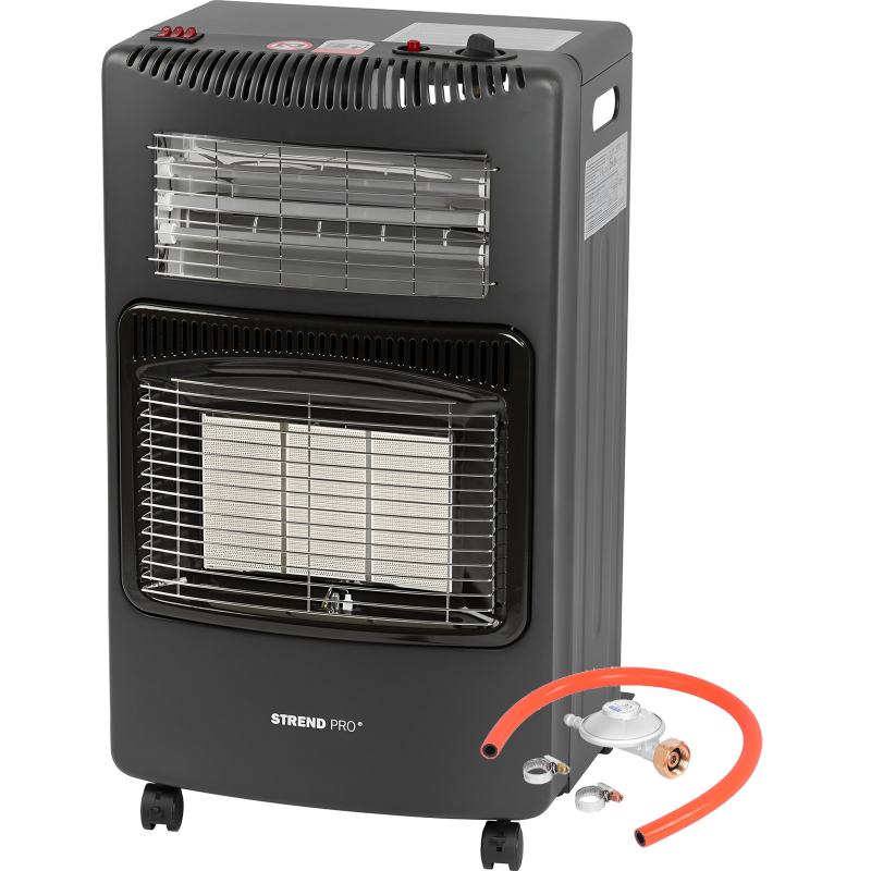 Mobilní kamna 2v1 s vysokým výkonem a ventilátorem podporujícím cirkulaci vzduchu pro efektivnější vytápění. Nabízí 3 stupně topného výkonu na plyn (1,63 / 2,7 / 4,2 kW) a elektrické topení o výkonu 1,2 kW (nelze používat současně s plynem). Spotřeba plynu je maximálně 305 g/h. K celý popisamna nevyžadují odvod spalin a jsou vybavena trojitým bezpečnostním jištěním. Piezoelektrické knoflíkové zapalování zajišťuje snadné spuštění. Pro snadné přemístění mají kolečka. Součástí balení je sada pro připojení 5, 10 nebo 33 kg PB lahve (redukční ventil, hadice 0,5 m, 2× hadicová spona). Uvnitř kamen je prostor pro běžnou 10kg LPG lahev. Rozměry sestavených kamen (Š×V×H) jsou 420×720×390 mm. Jsou skládací a při uskladnění či přepravě zaberou minimum místa (hloubka pouze 14 cm). Délka přívodního kabelu činí 1,8 m, hmotnost 9 kg.
